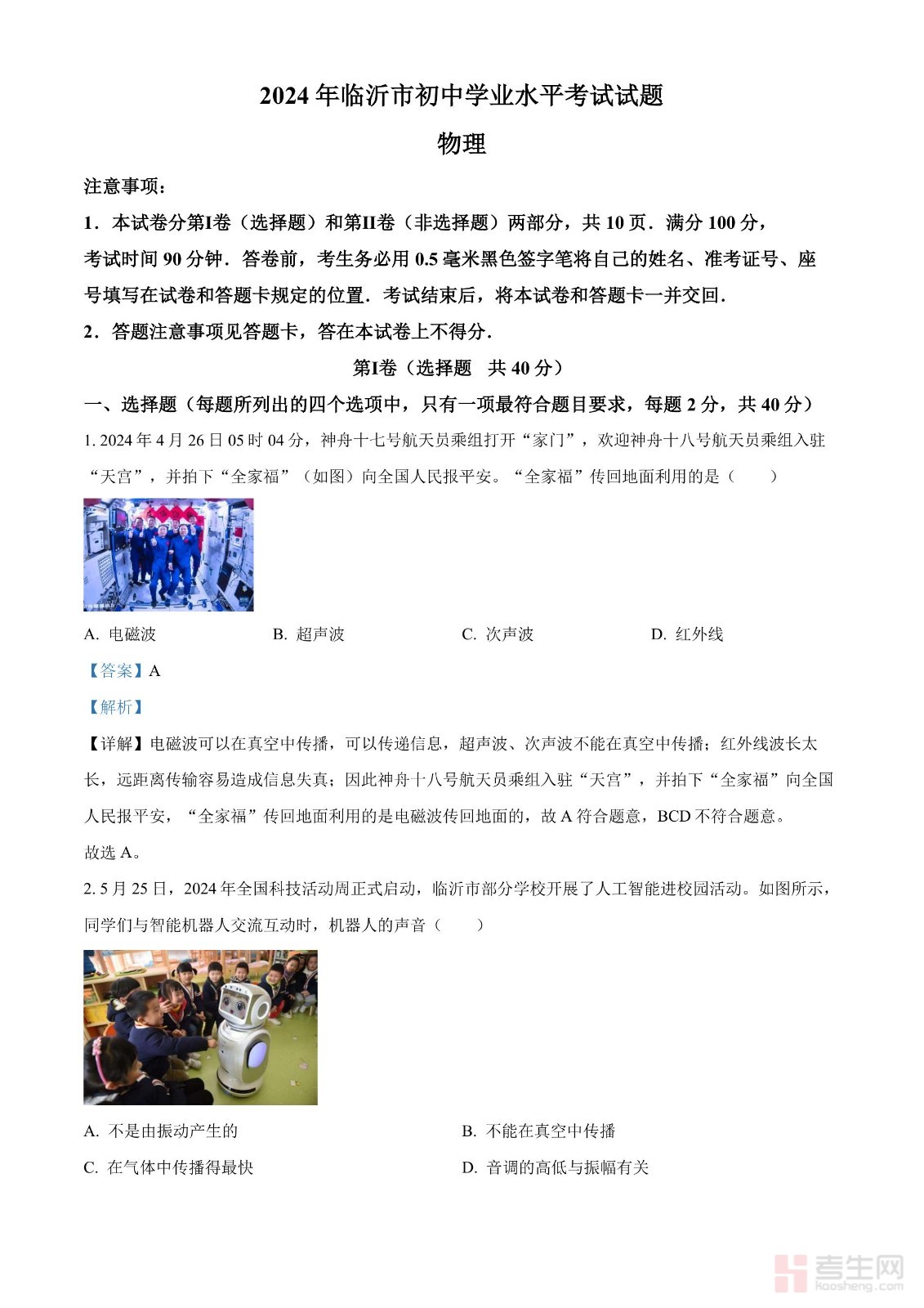 2024年山东省临沂市中考物理真题(解析版)