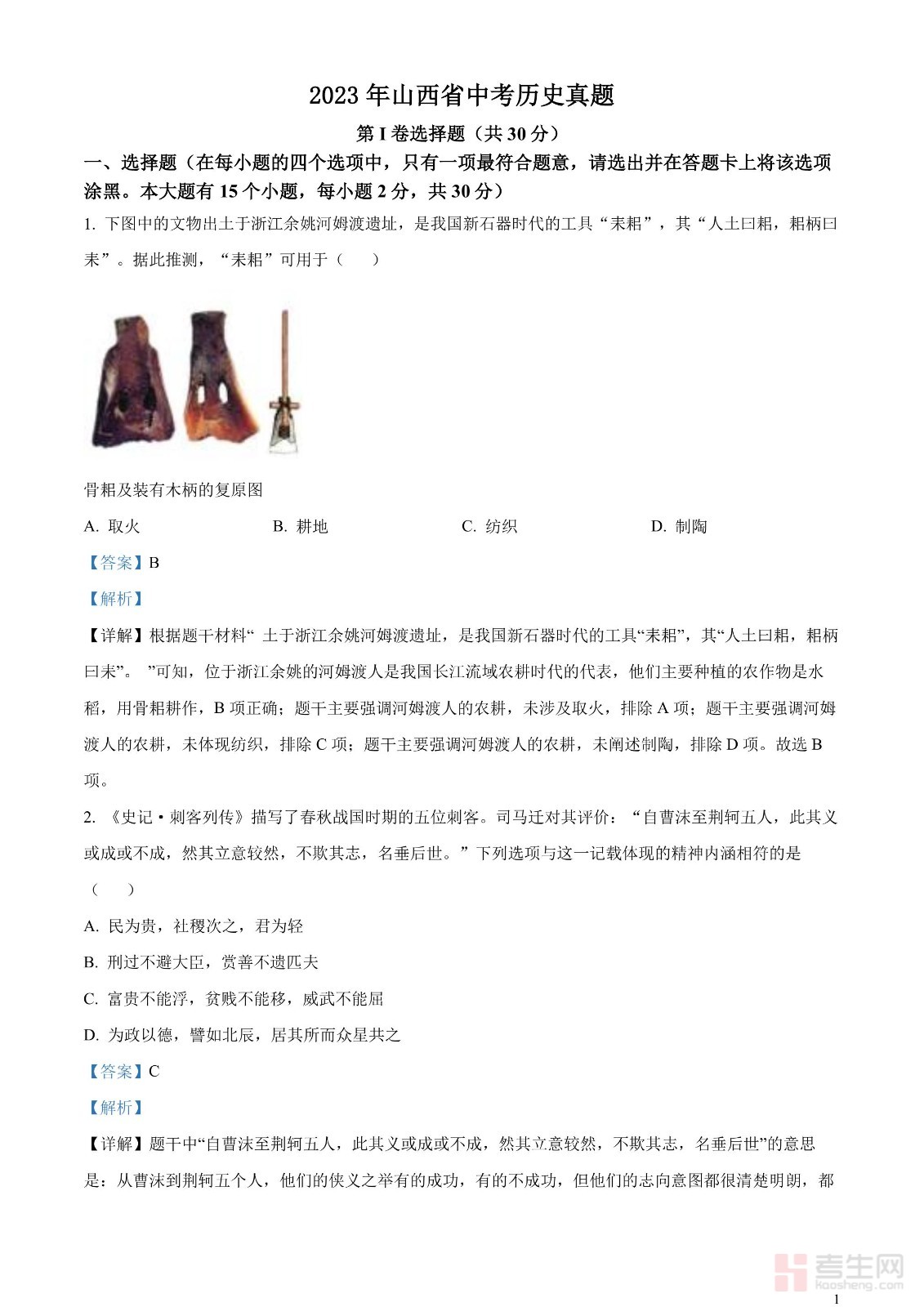 2023年山西省中考历史真题(解析版)