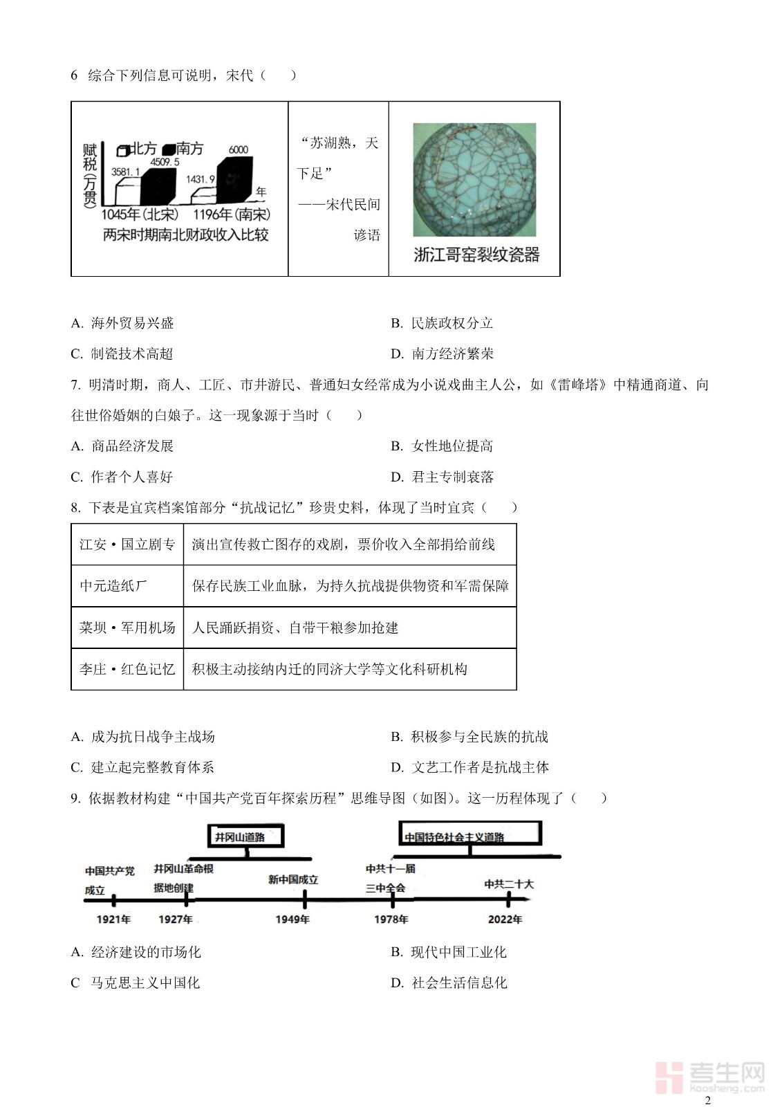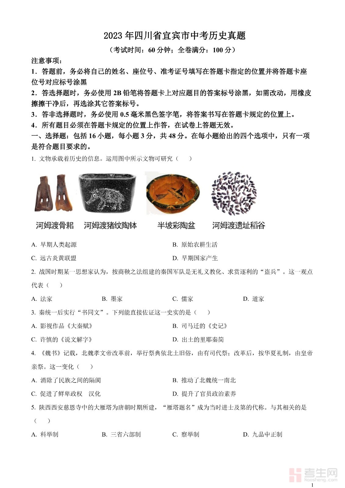 2023年四川省宜宾市中考历史真题(原卷版)