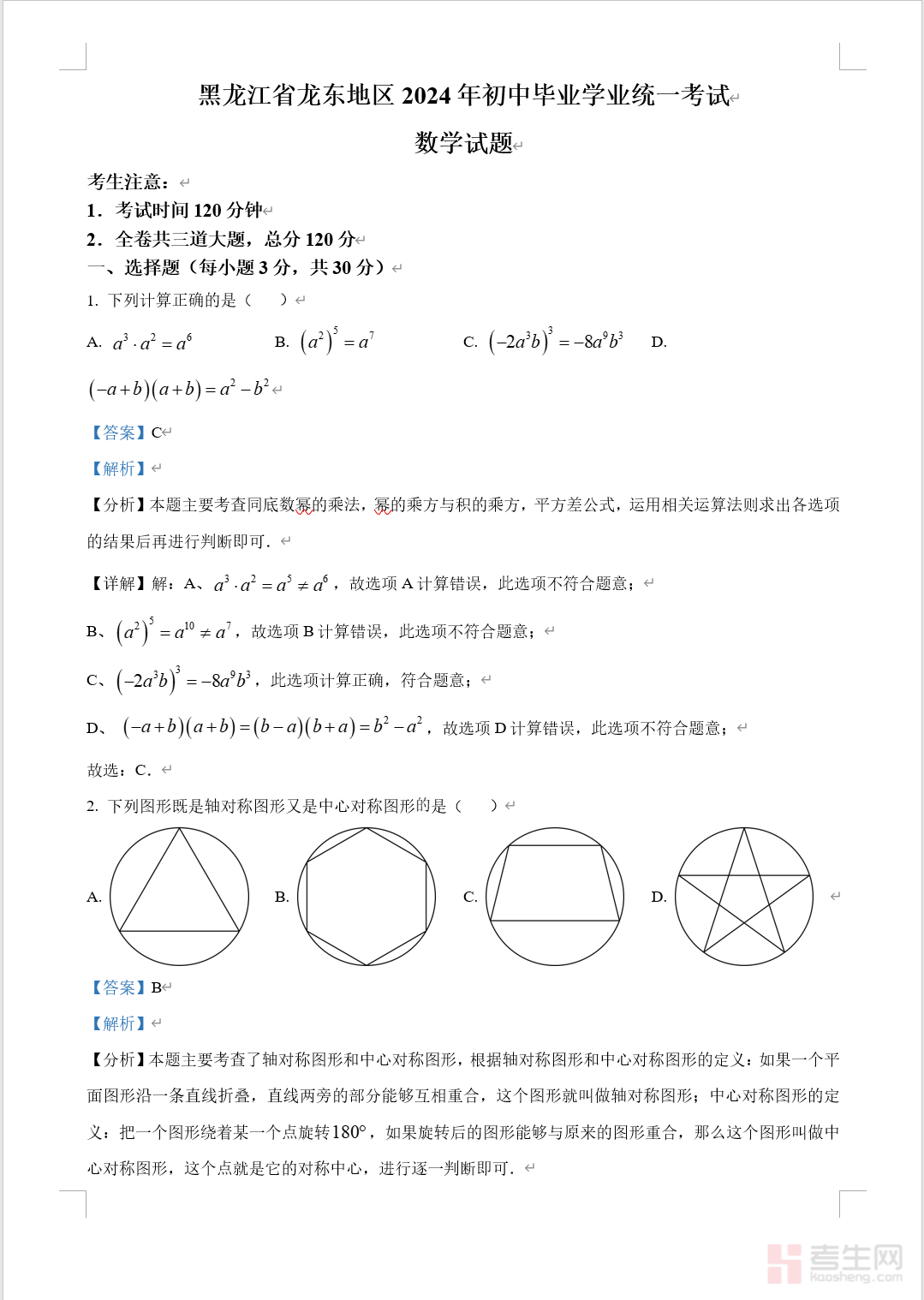 黑龙江省龙东地区2024年初中毕业学业统一考试