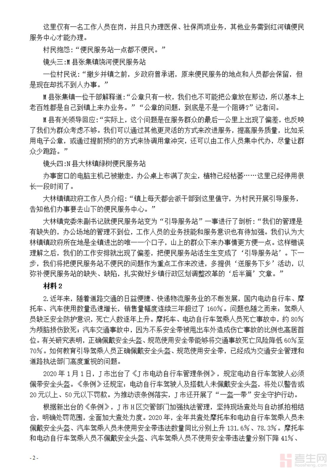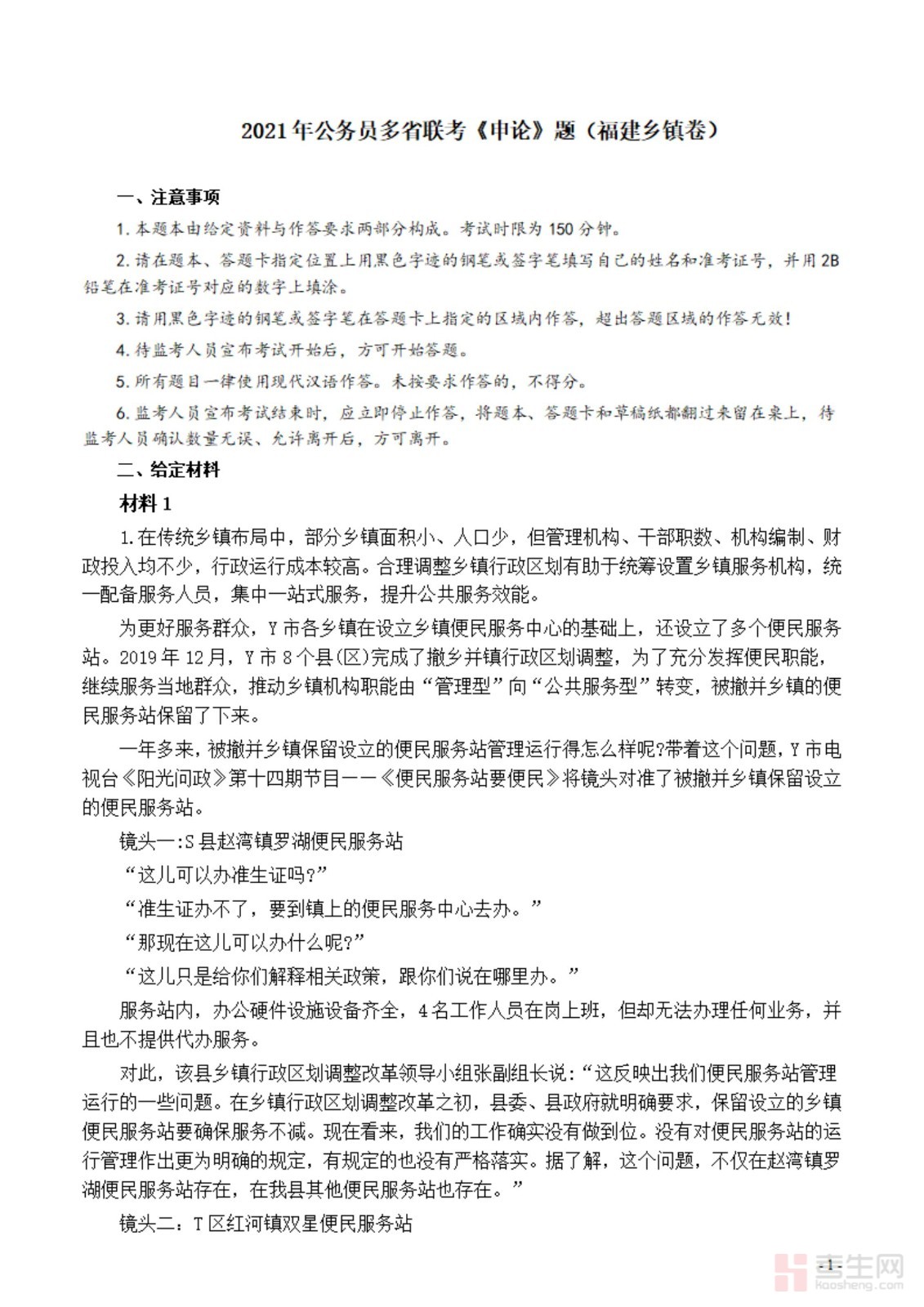 2021年公务员多省联考《申论》题(福建乡镇卷)及参考答案