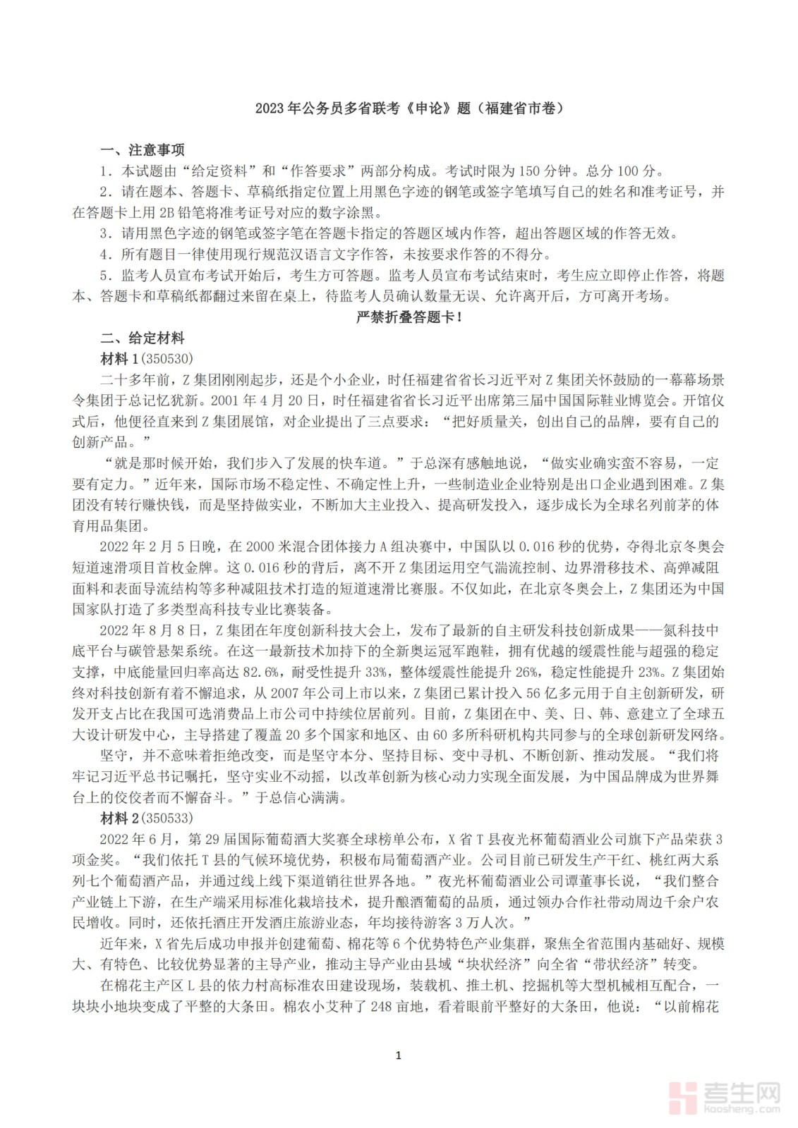 2023年公务员多省联考《申论》(福建省市卷)真题及答案