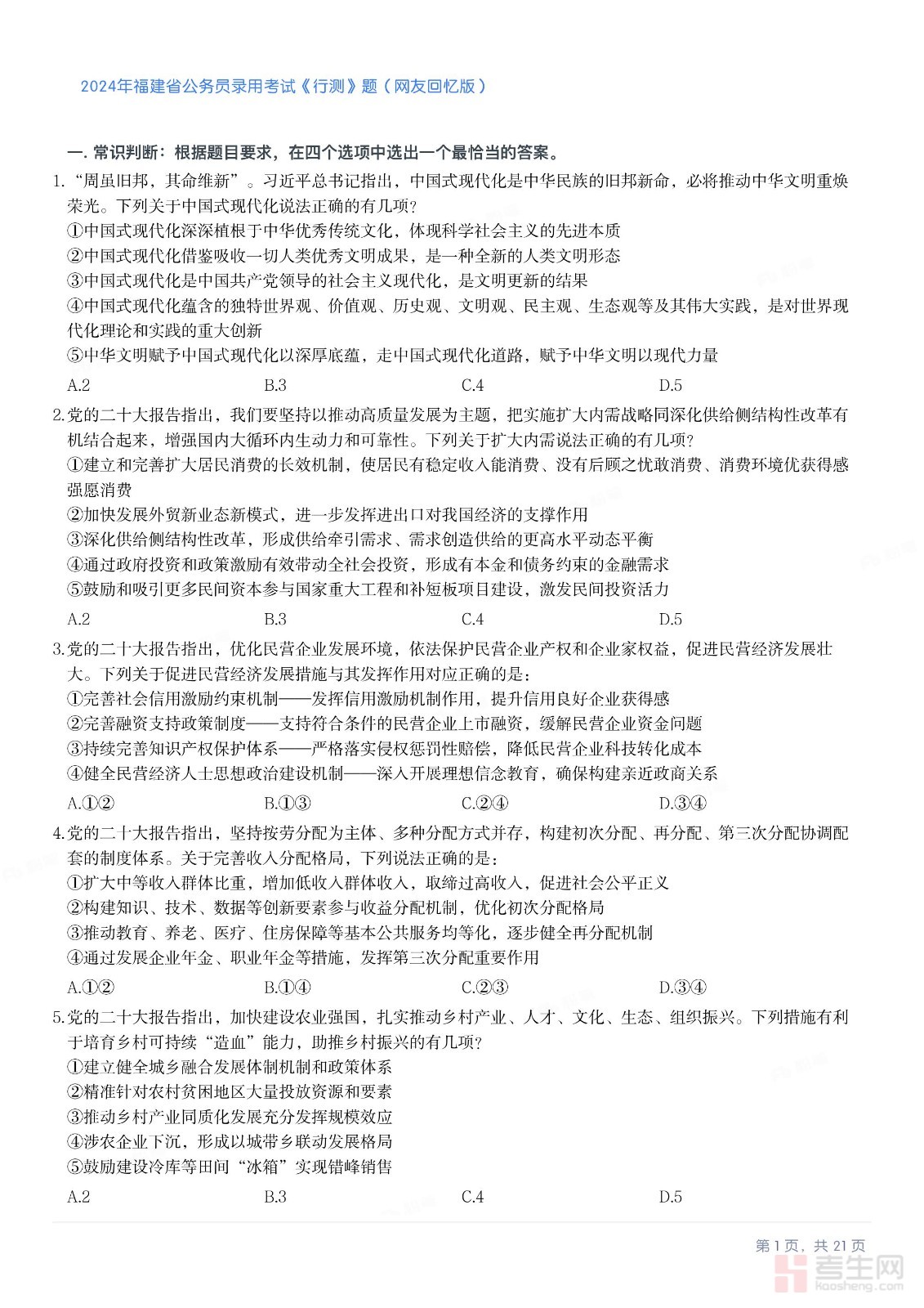 2024年福建省公务员录用考试《行测》真题+答案及解析