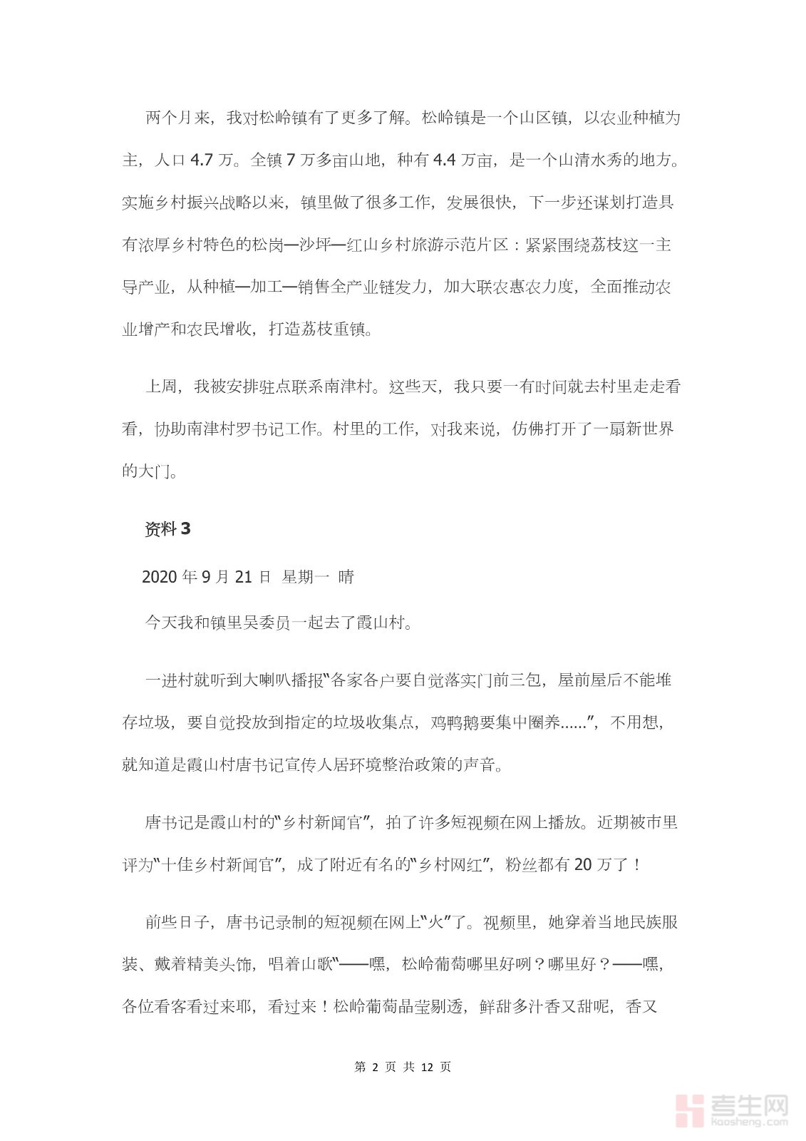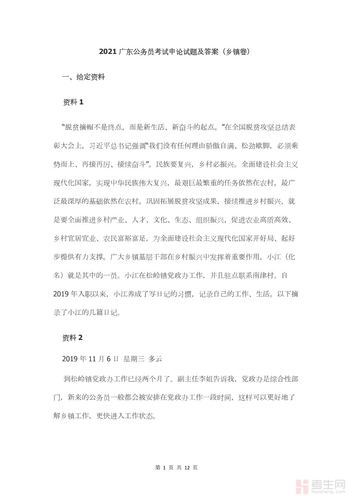 2021年广东省公务员考试申论真题及答案(乡镇卷)