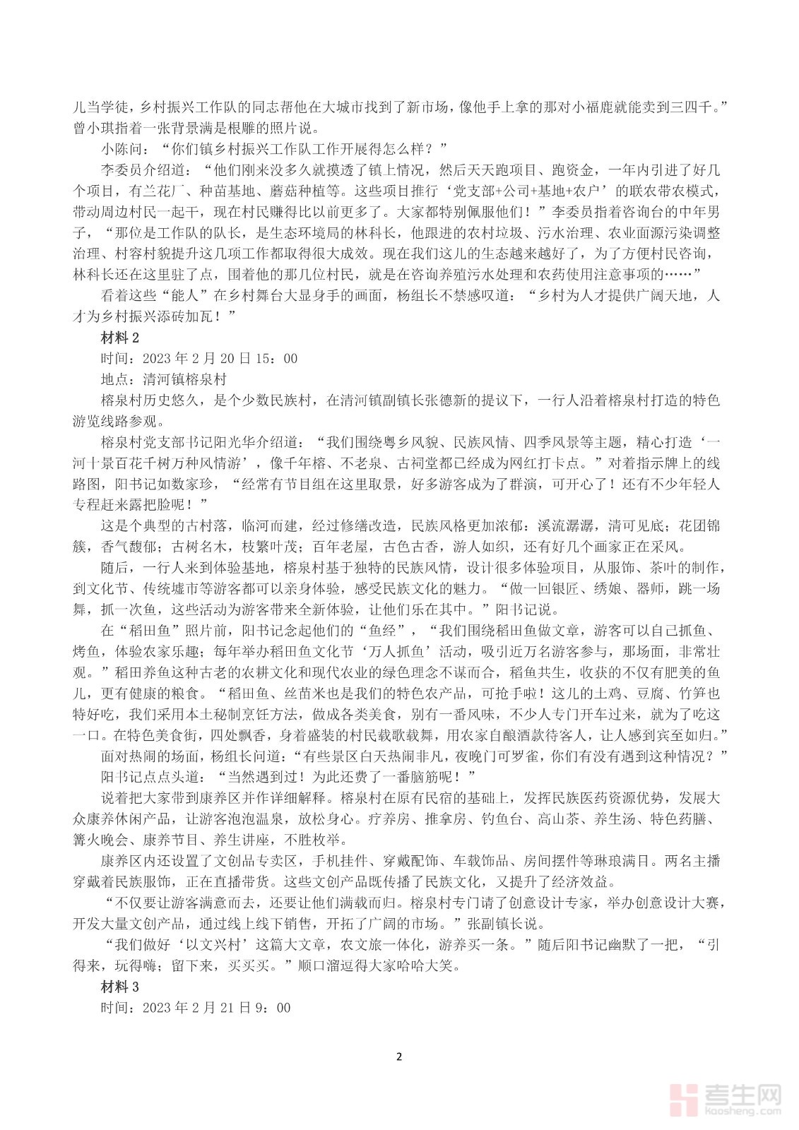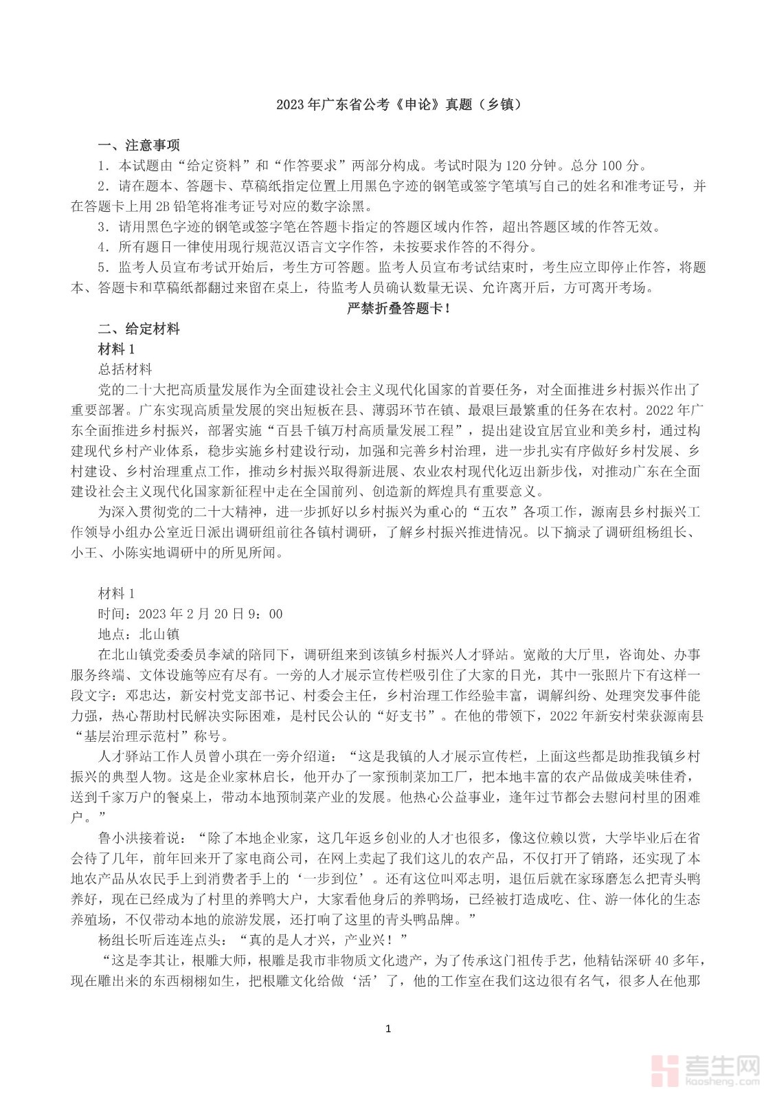 2023年广东省公考《申论》题(乡镇)及参考答案