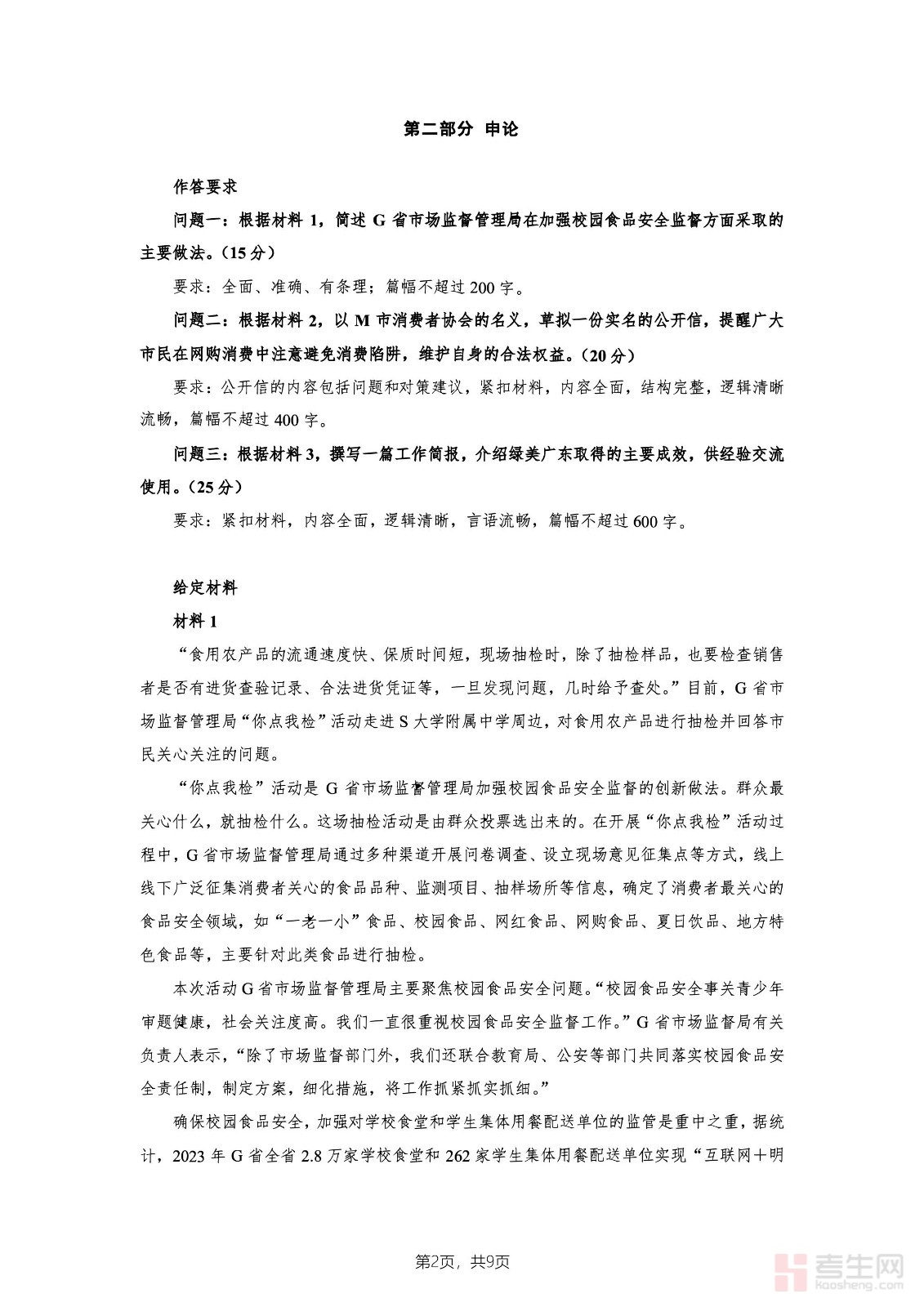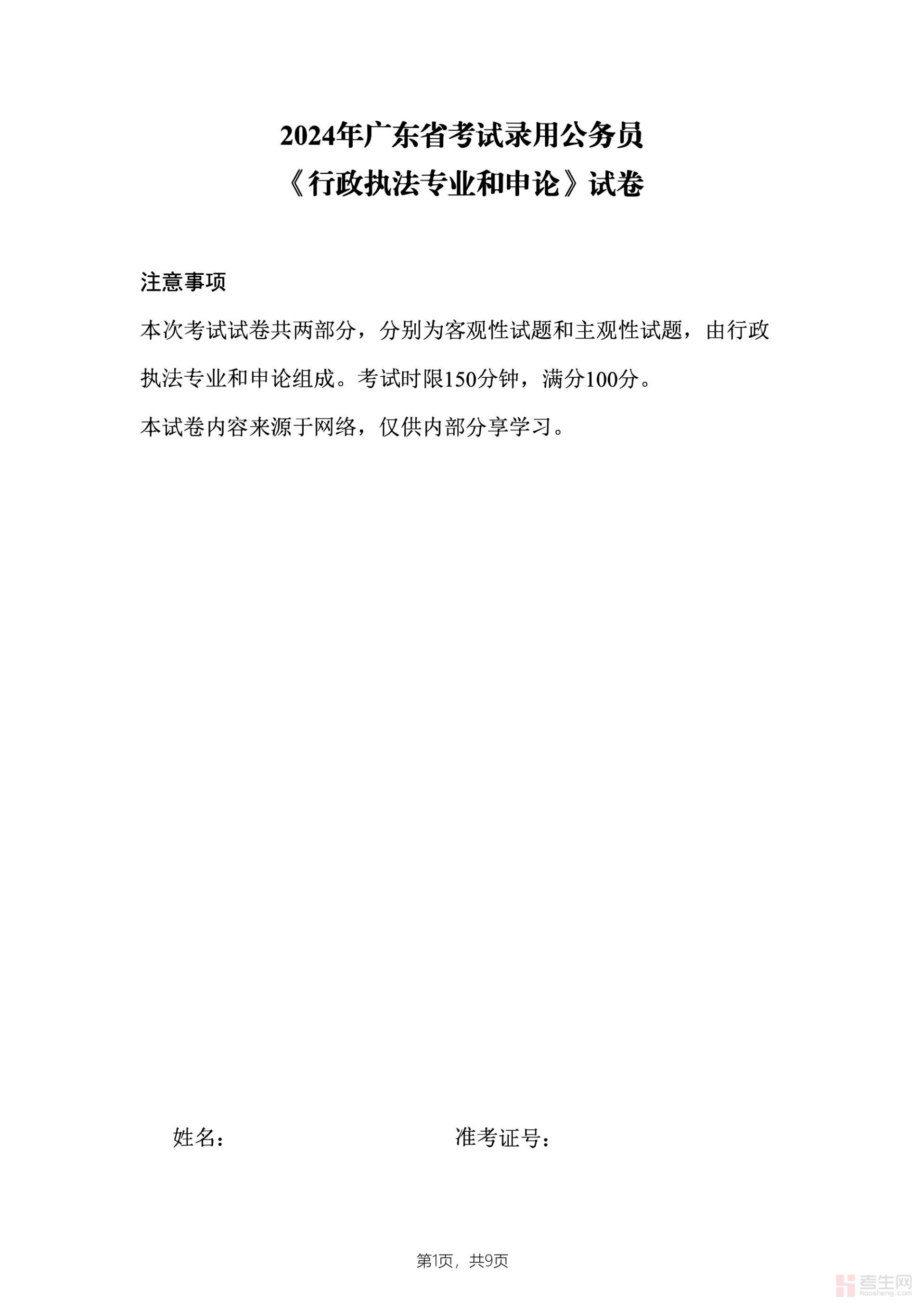 2024年公务员广东省考《申论》题(三卷-行政执法)及参考答案