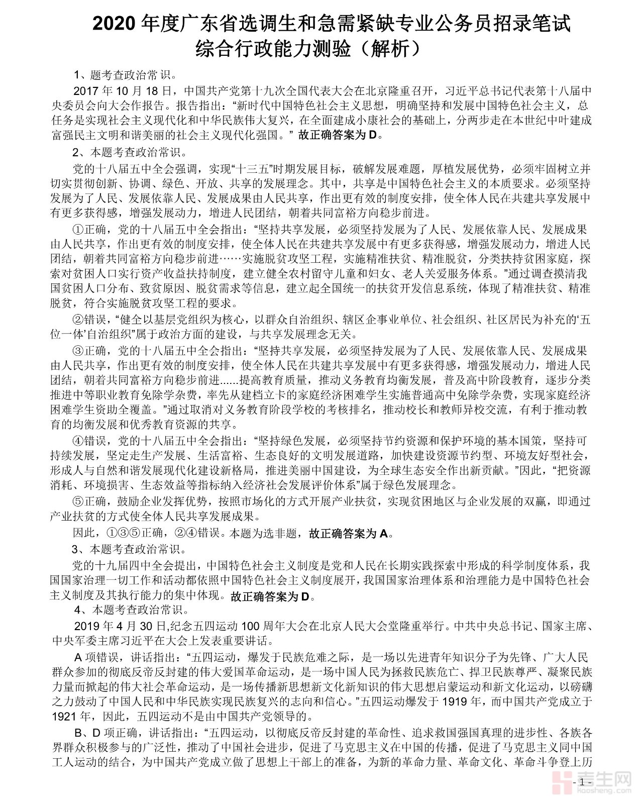 2020年广东选调生和急需紧缺专业公务员招录笔试《综合行政能力测验》真题答案及解析