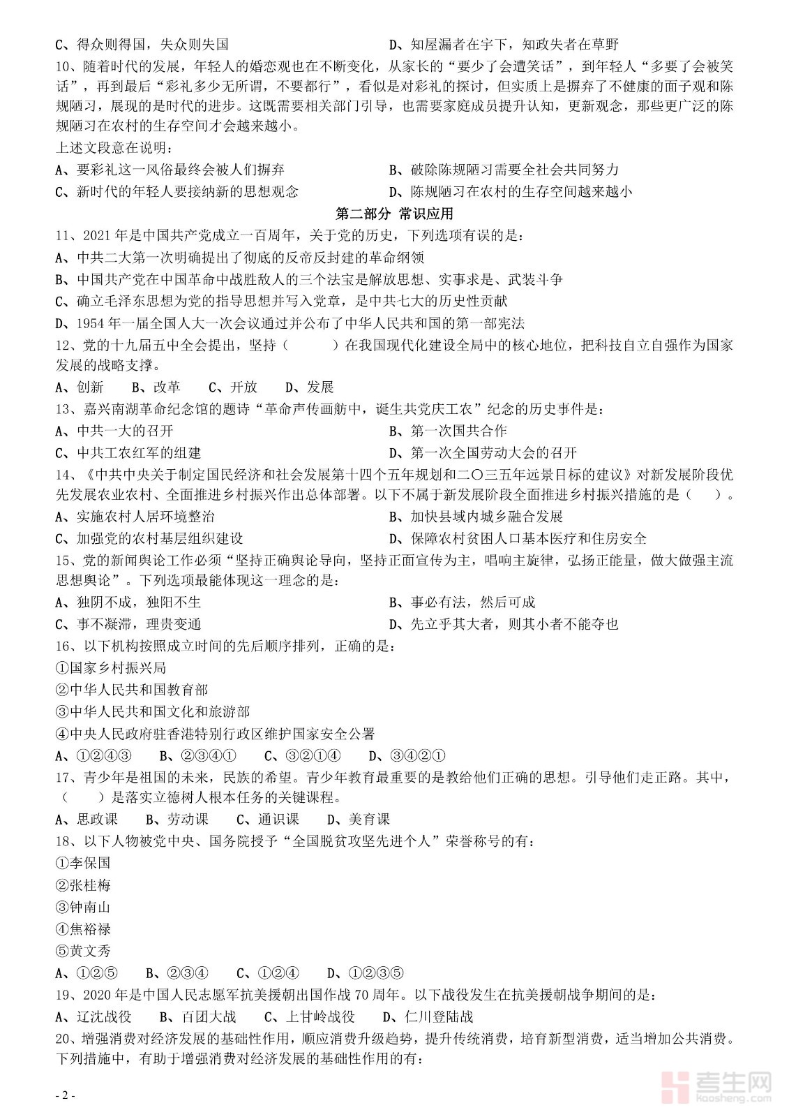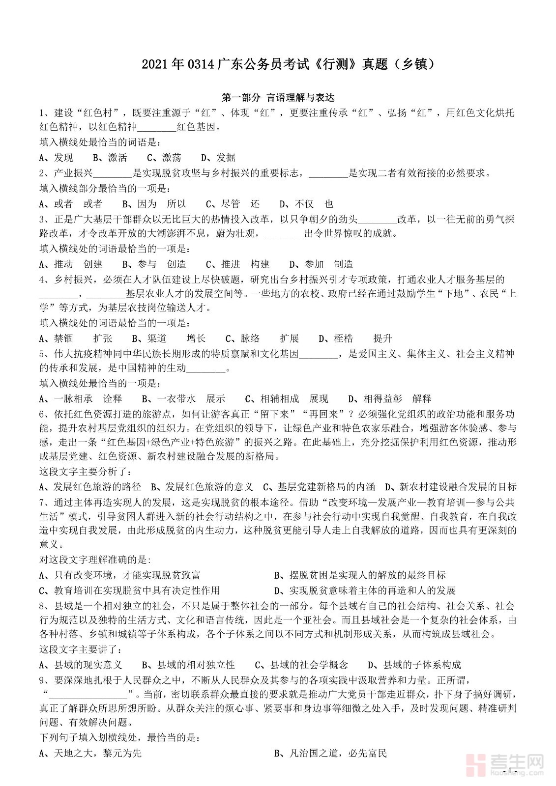 2021年0314广东公务员考试《行测》真题(乡镇)
