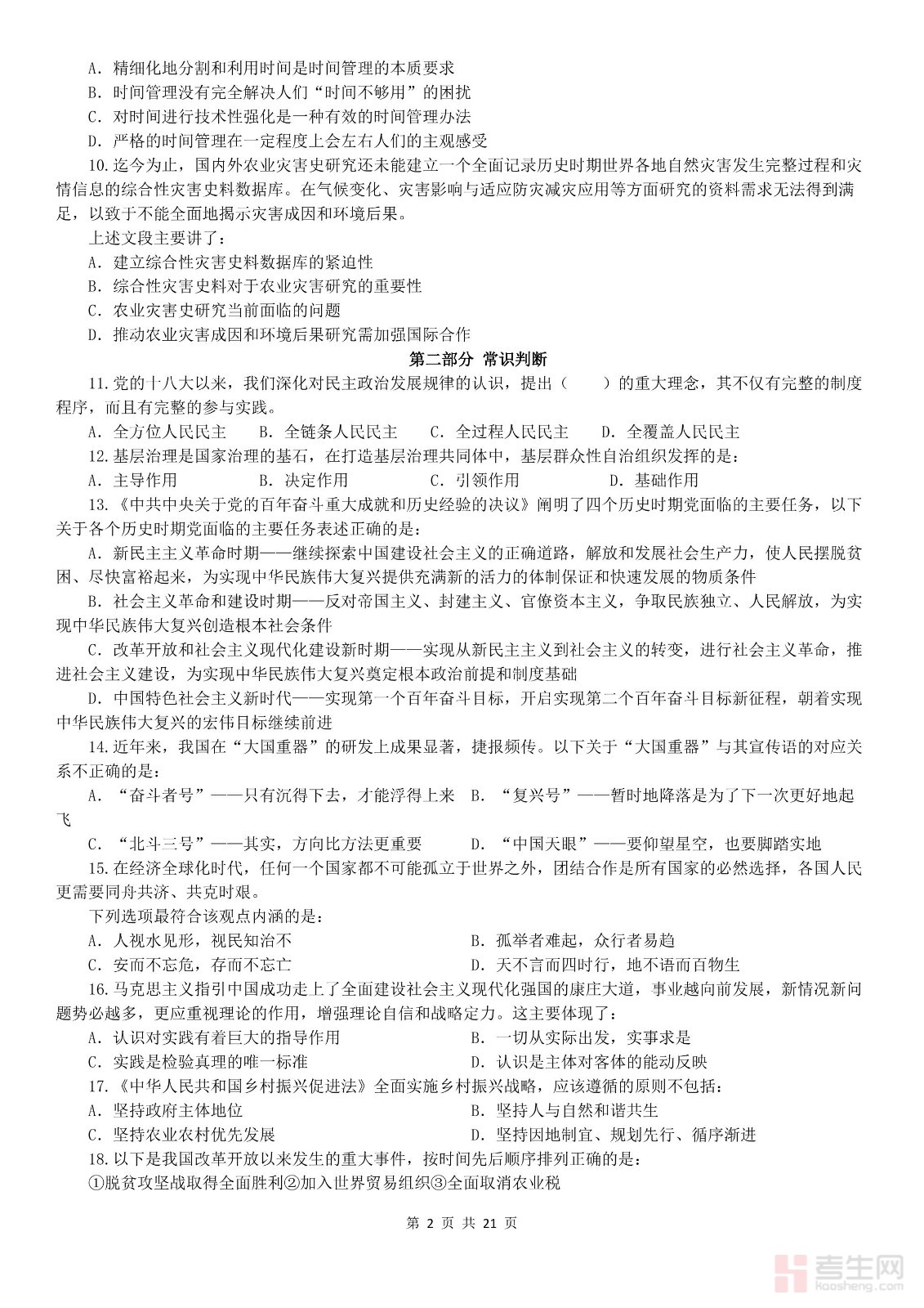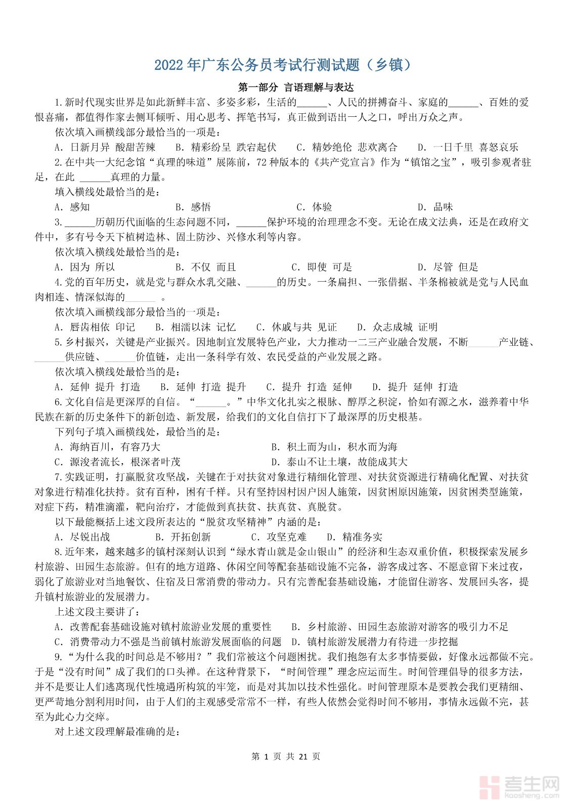 2022年广东公务员考试行测试题(乡镇)