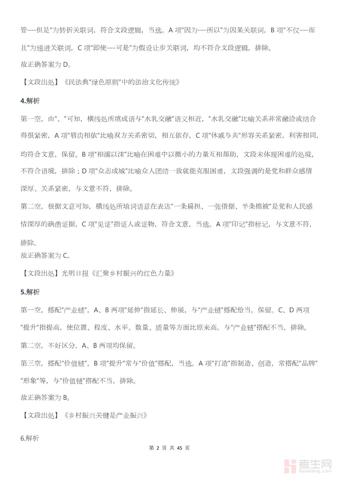 2022年广东公务员考试行测试题(乡镇)答案解析