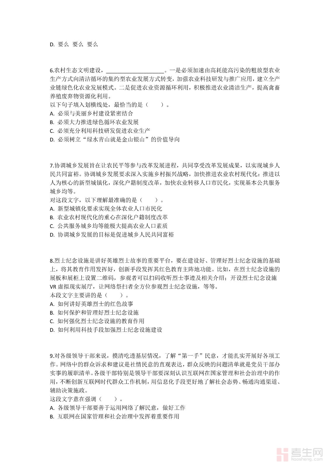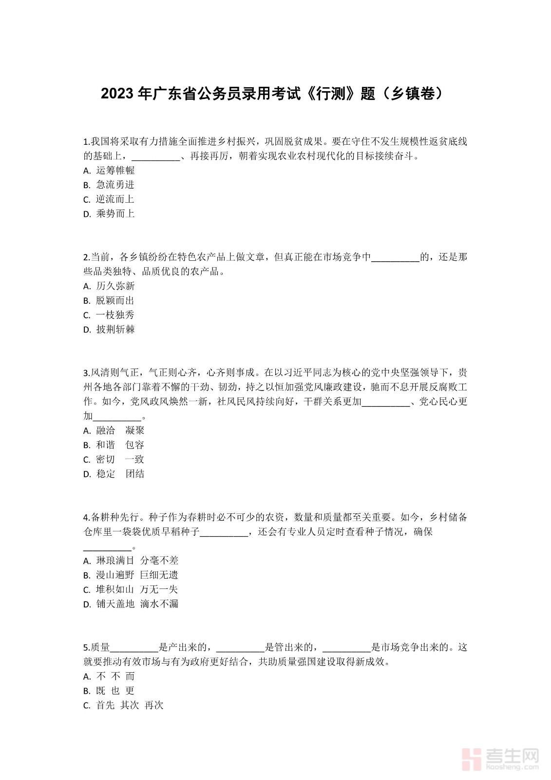 2023年广东省公务员录用考试《行测》题(乡镇卷)