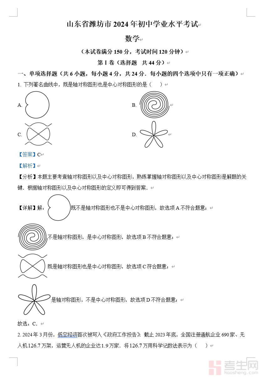 山东省潍坊市2024年初中学业水平考试