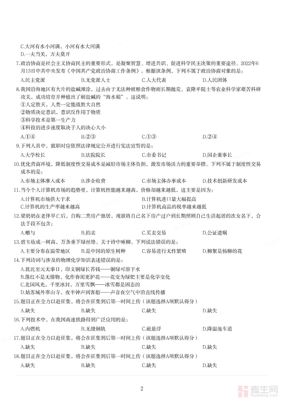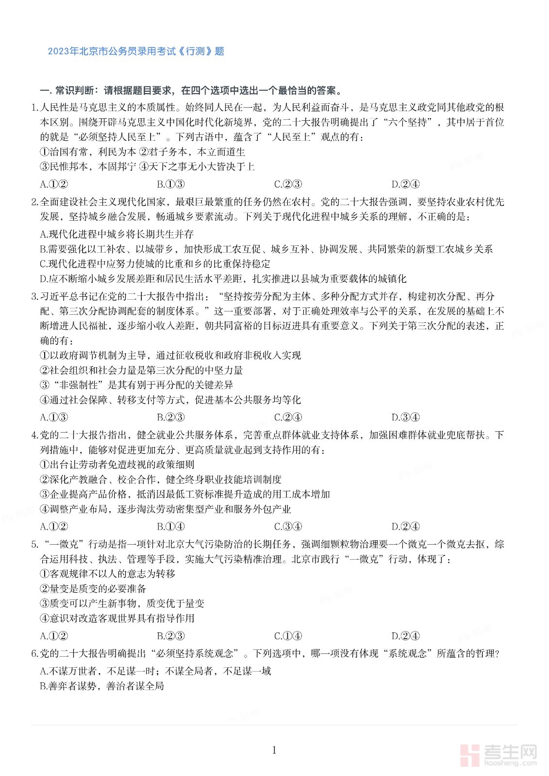 2023年北京市公务员录用考试《行测》题(15-27题111-125题128-135题缺失,后期持续更新)