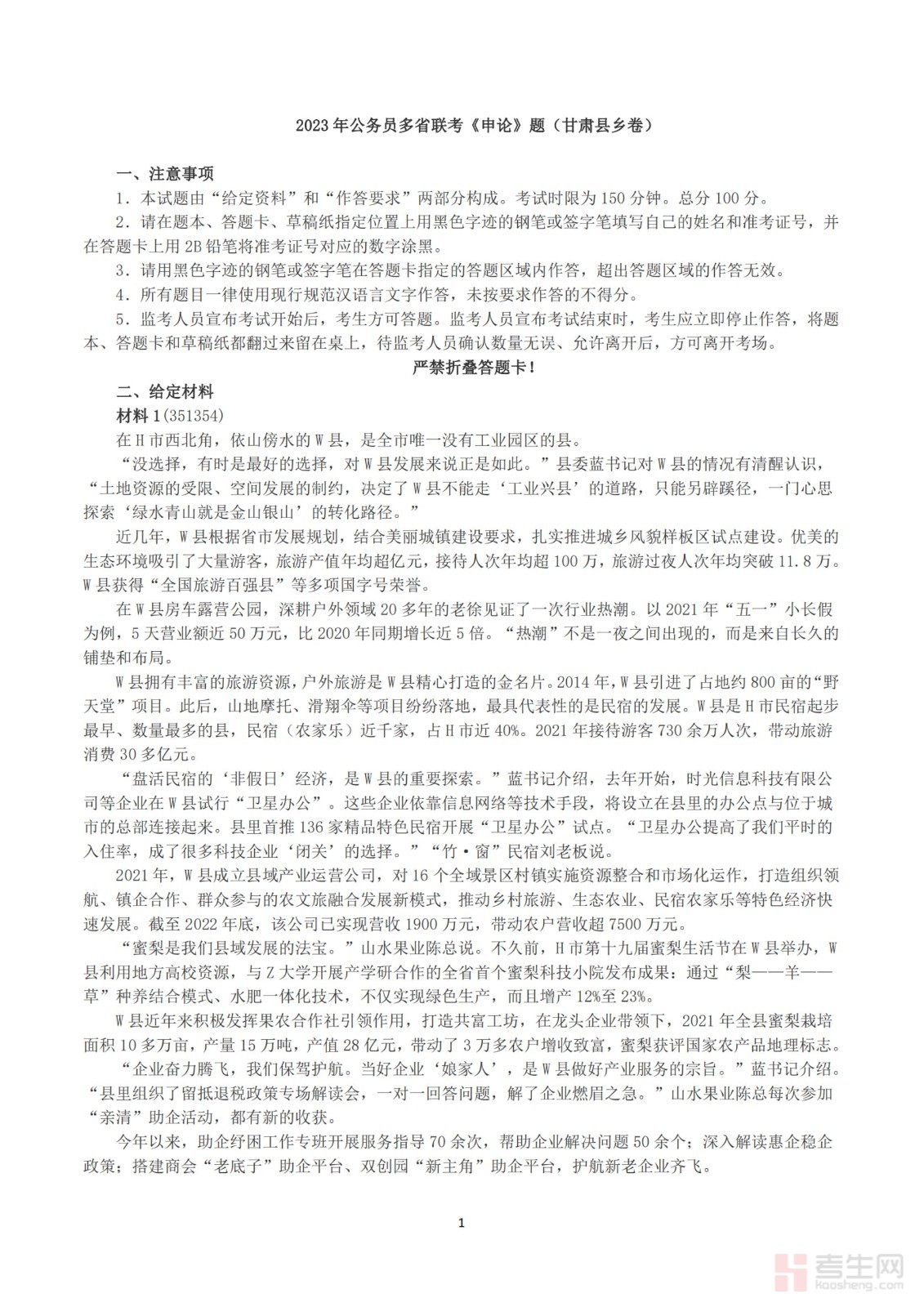 2023年公务员多省联考《申论》(甘肃县乡卷)真题及解析