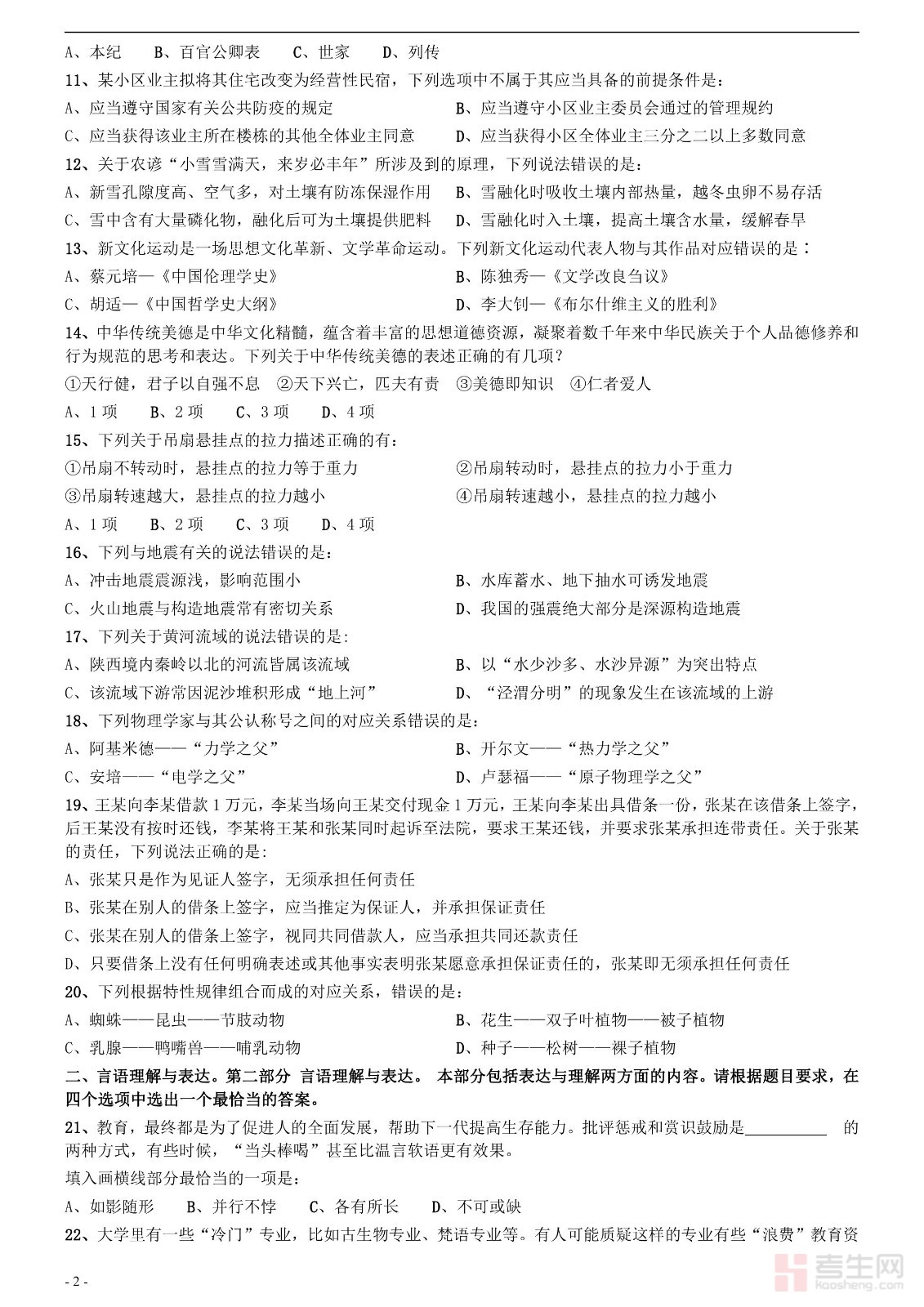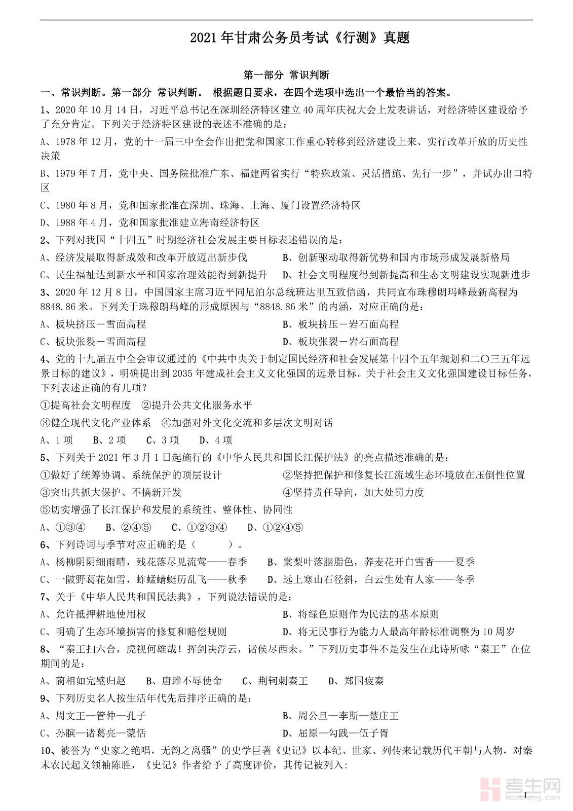 2021年甘肃公务员考试《行测》真题