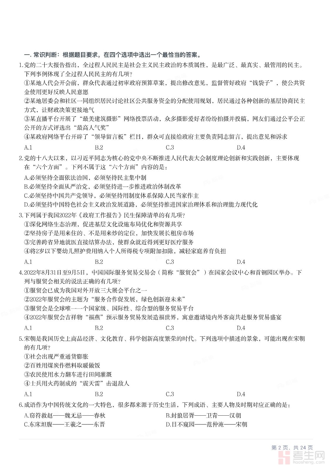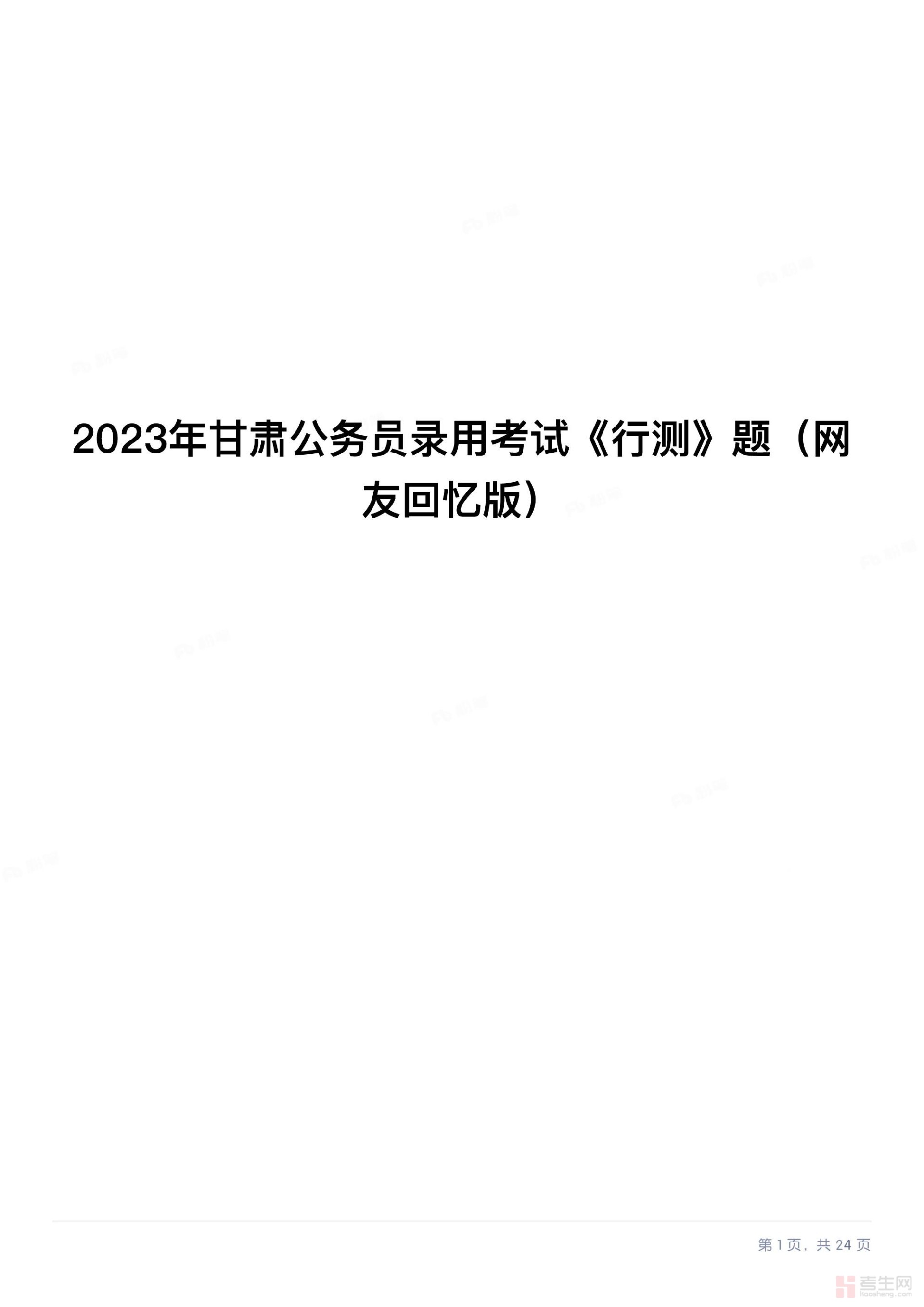 2023年甘肃公务员录用考试《行测》题(网友回忆版)