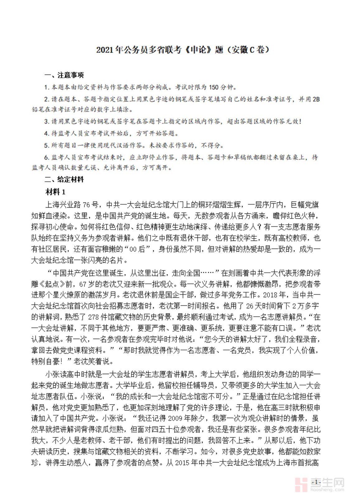 2021年公务员多省联考《申论》题(安徽C卷)及参考答案