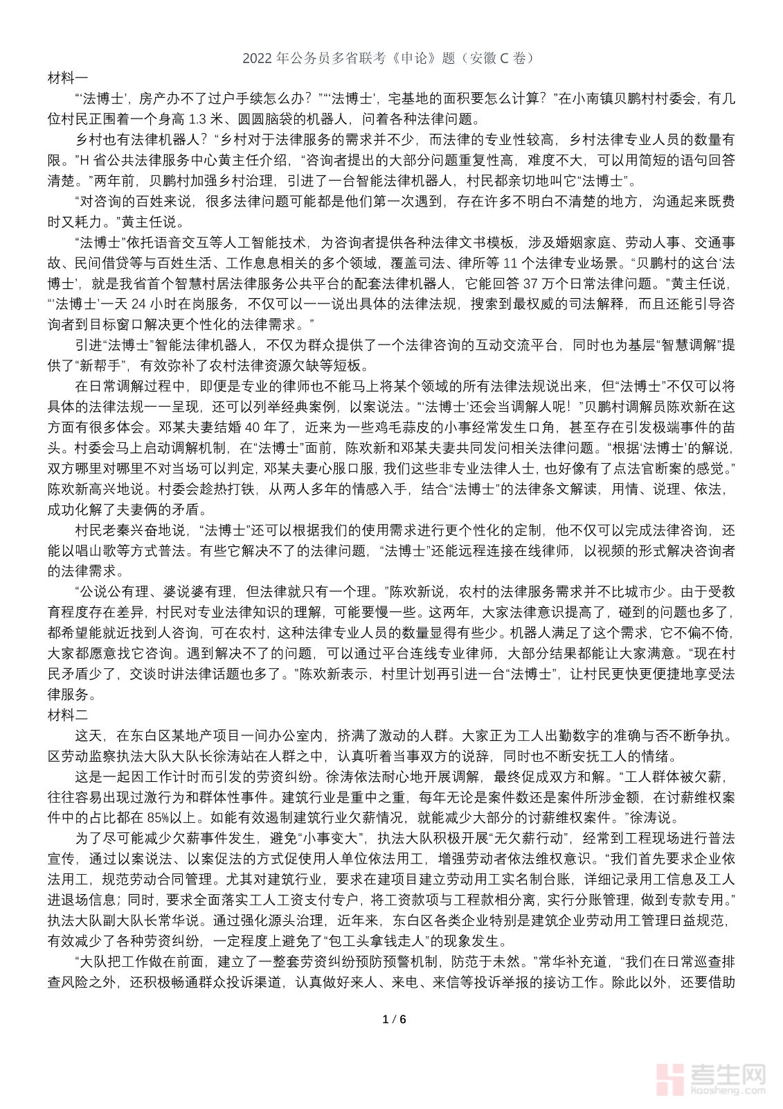 2022年0709公务员多省联考《申论》题(安徽C卷)及参考答案