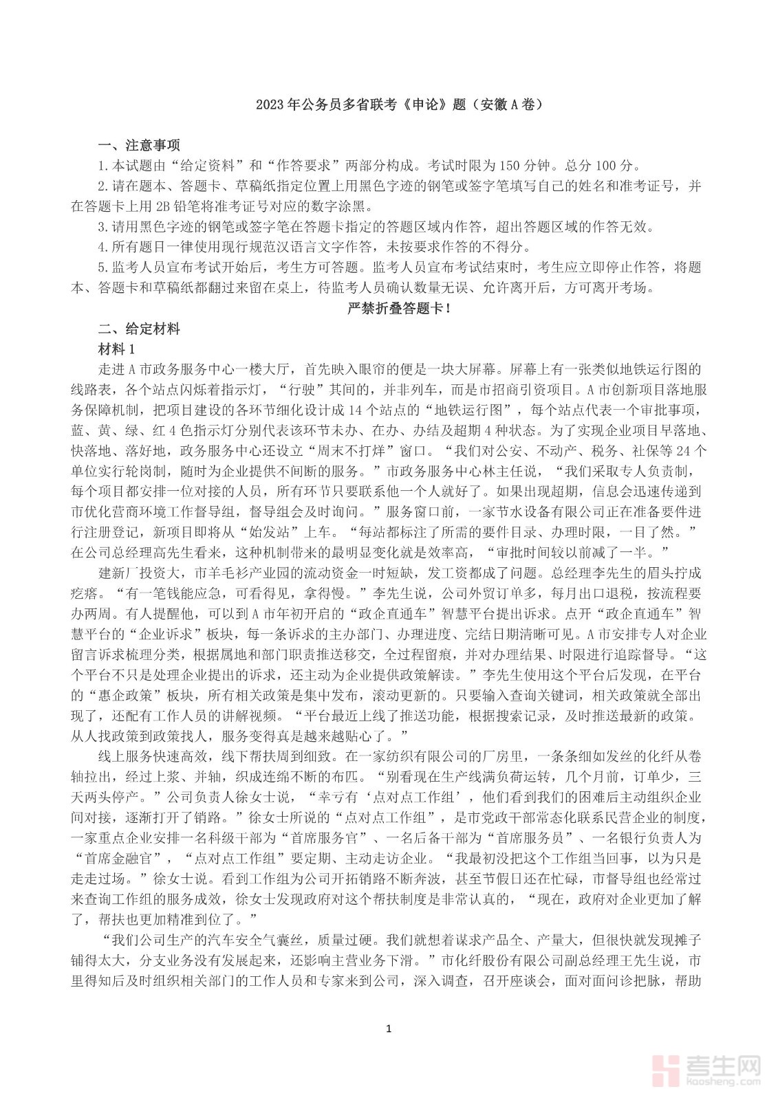 2023年公务员多省联考《申论》真题及答案(安徽A卷)