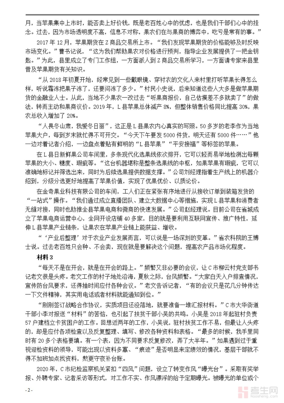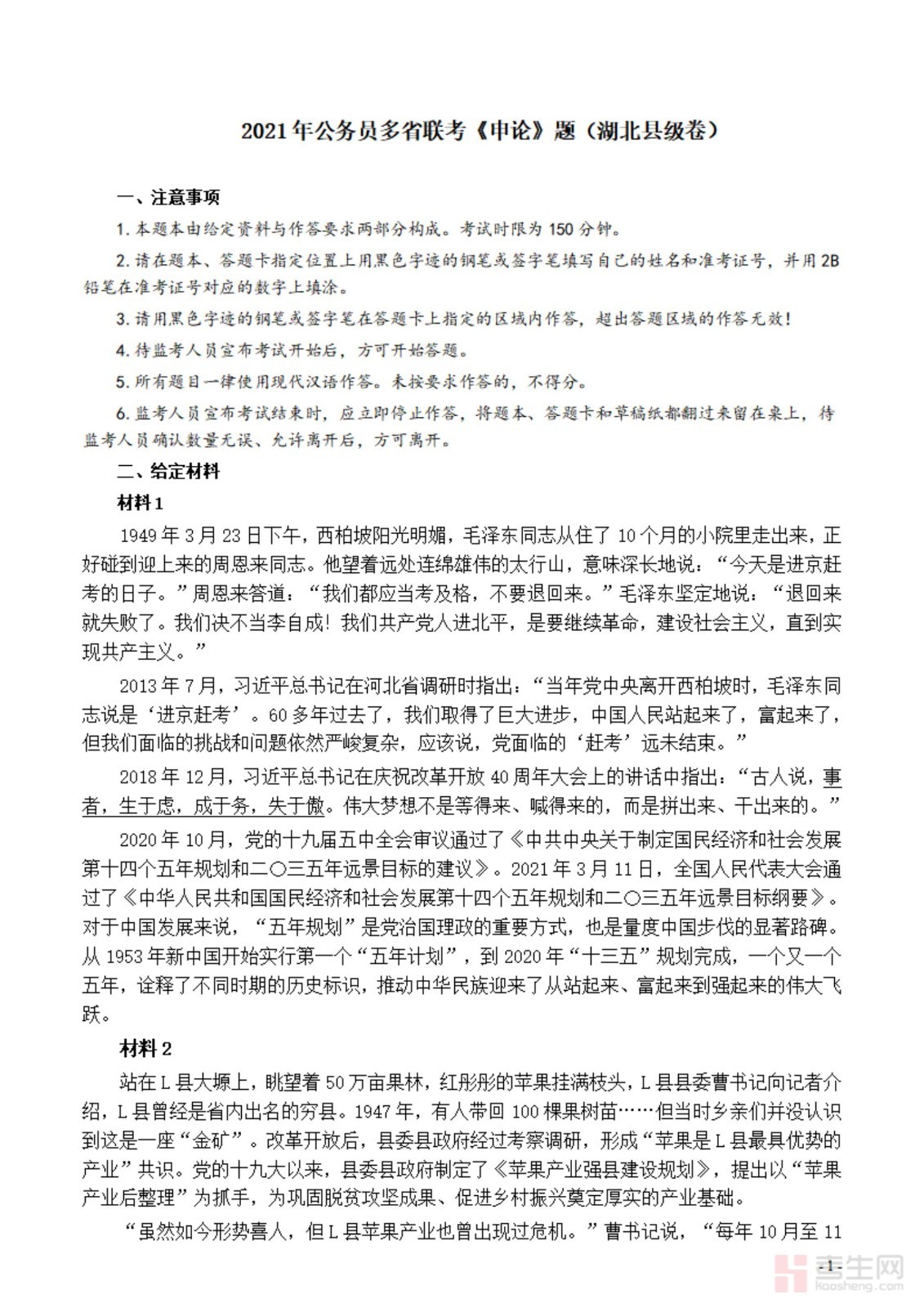 2021年公务员多省联考《申论》题(湖北县级卷)及参考答案