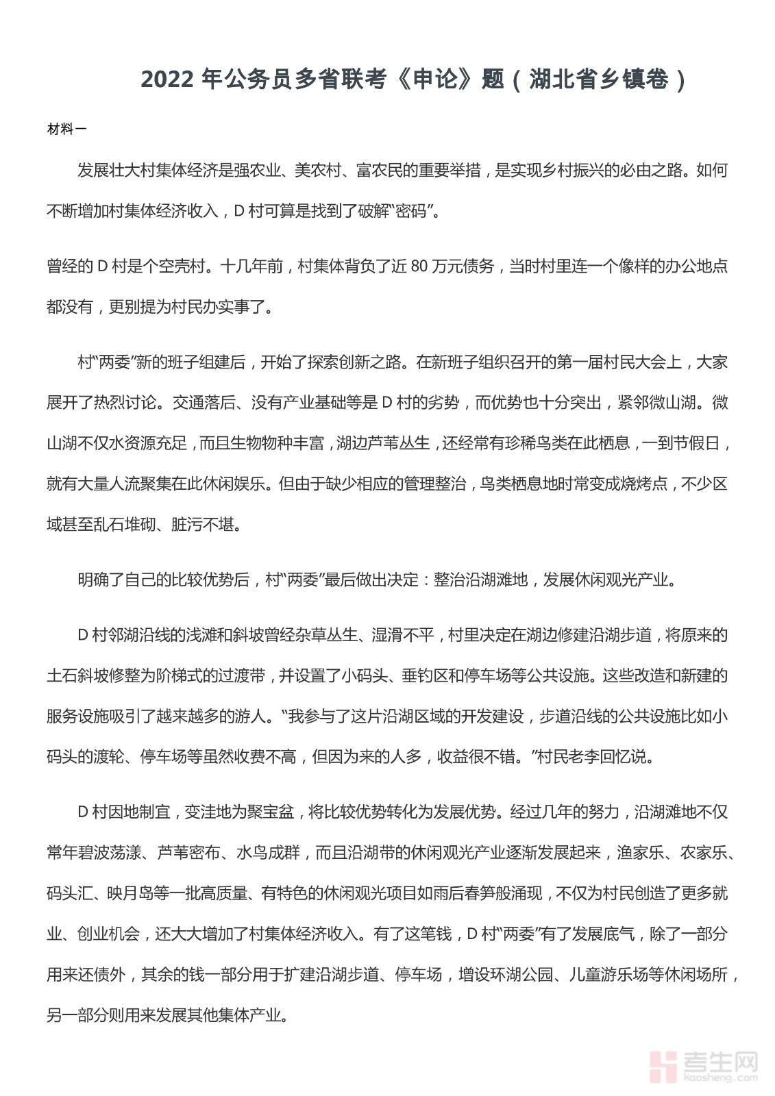 2022年0709湖北公务员考试申论真题及答案(乡镇卷)