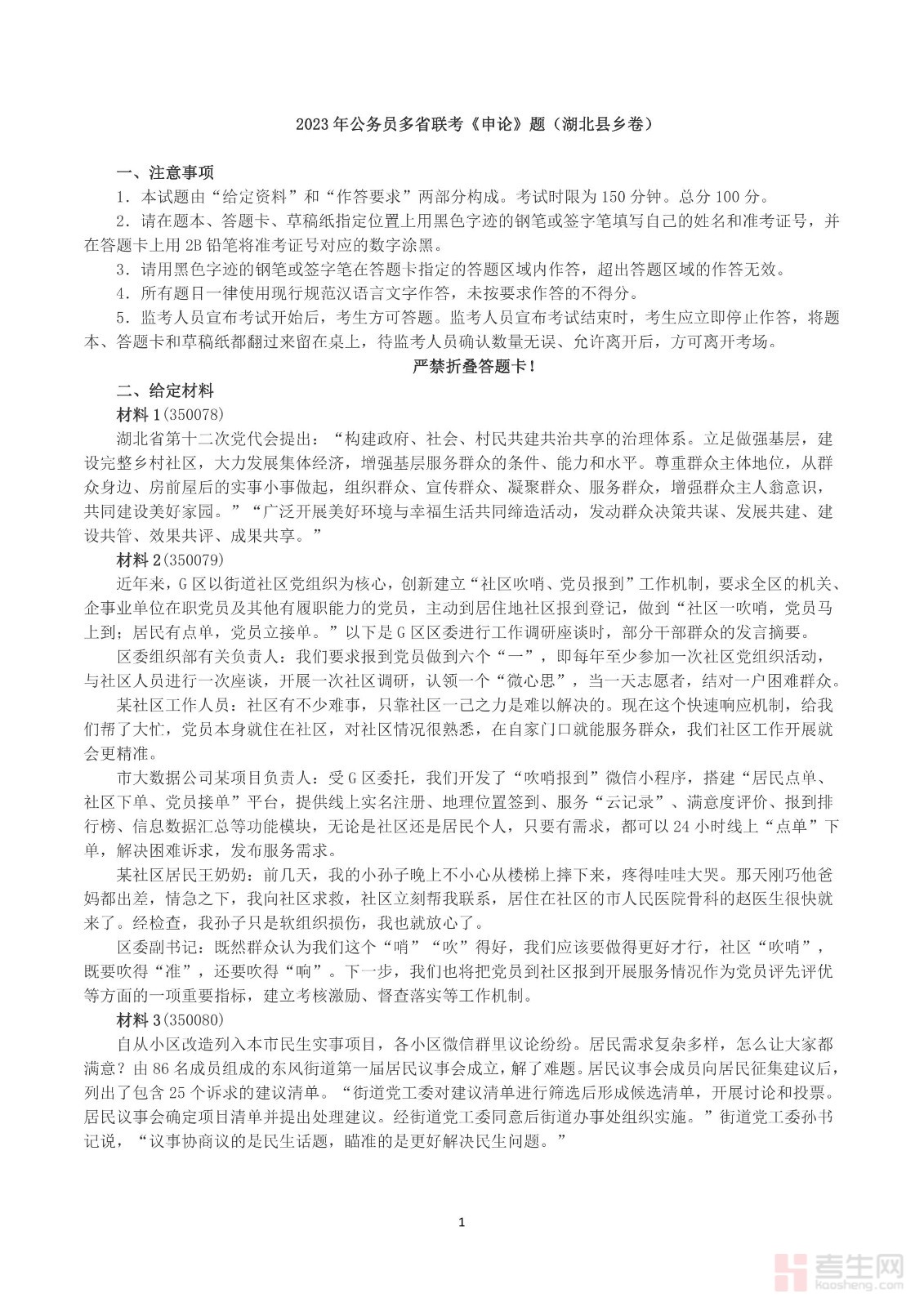 2023年公务员多省联考《申论》(湖北县乡卷)真题及答案