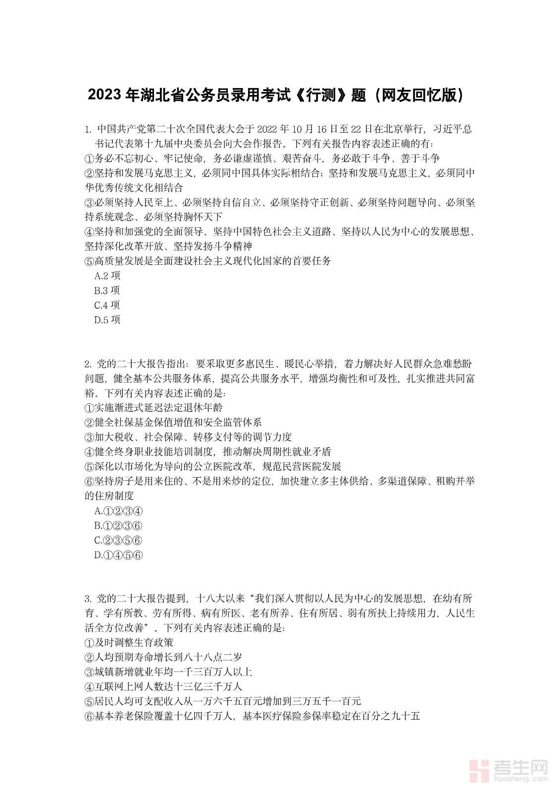 2023年湖北省公务员录用考试《行测》题