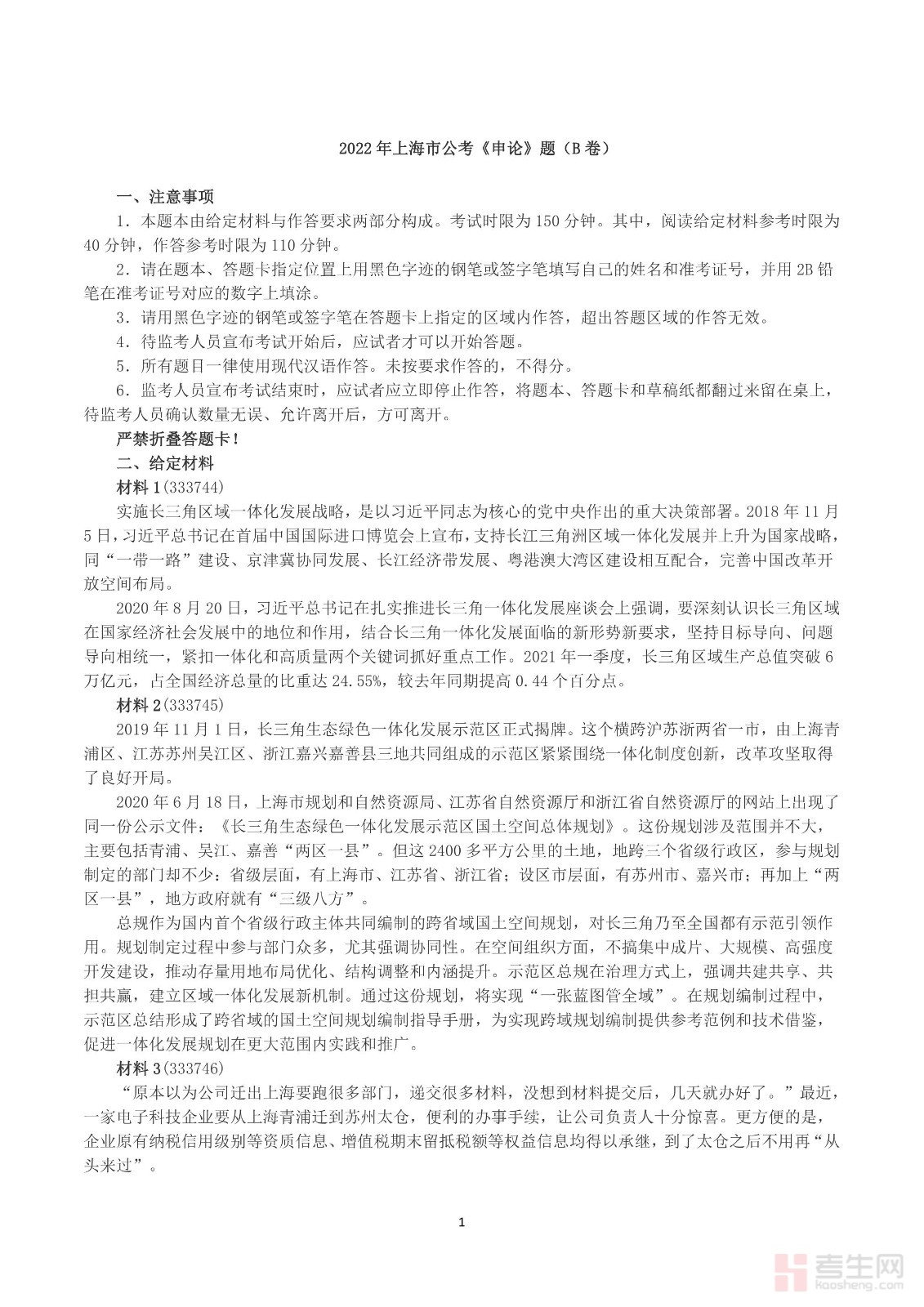 2022年上海市公考《申论》(B卷)真题及答案