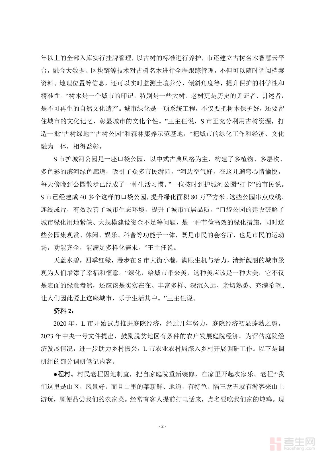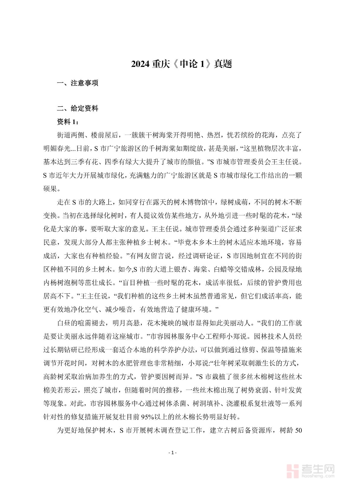 2024 年公务员重庆省考《申论》(一卷)题及参考答案