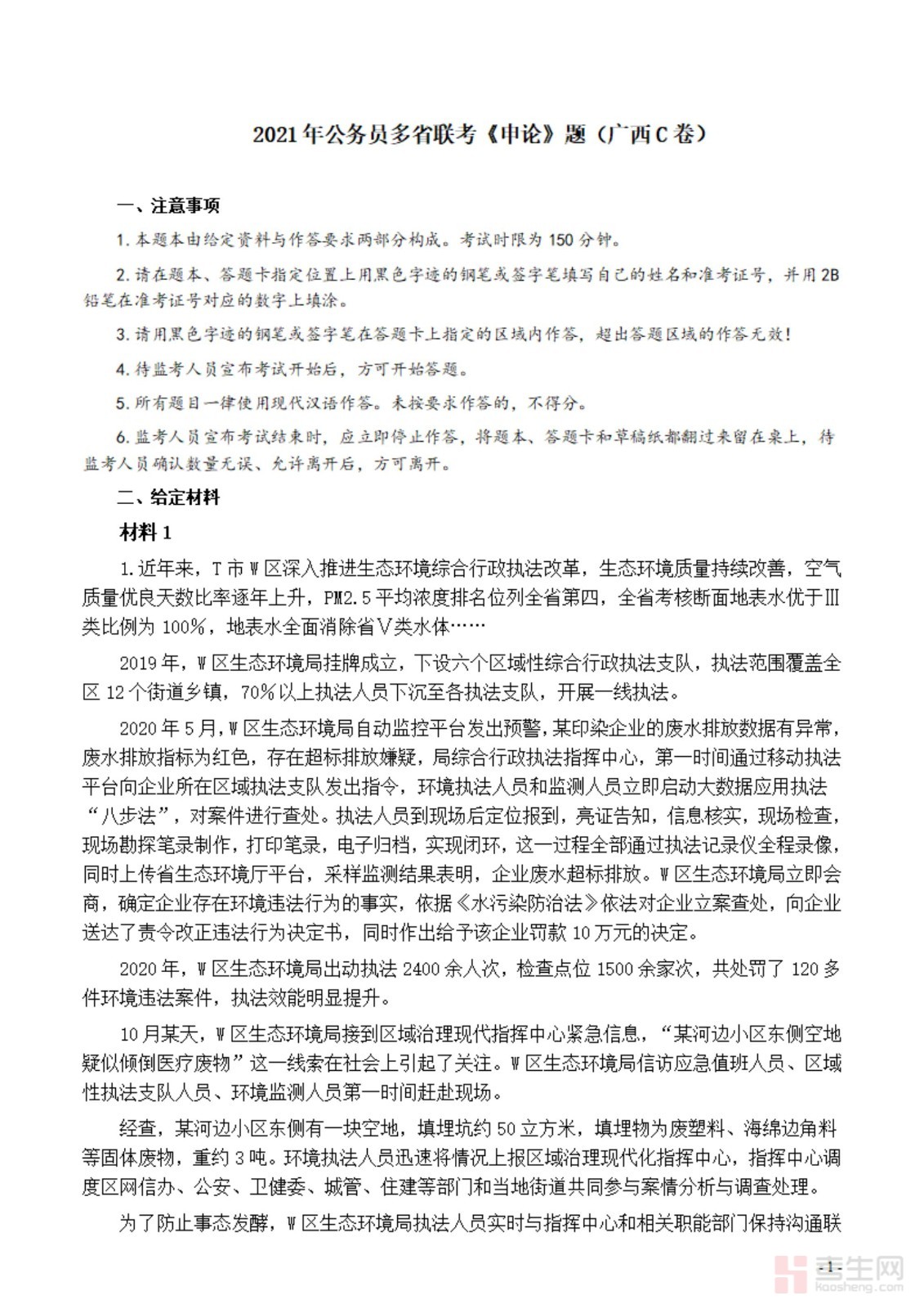 2021年公务员多省联考《申论》题(广西C卷)及参考答案