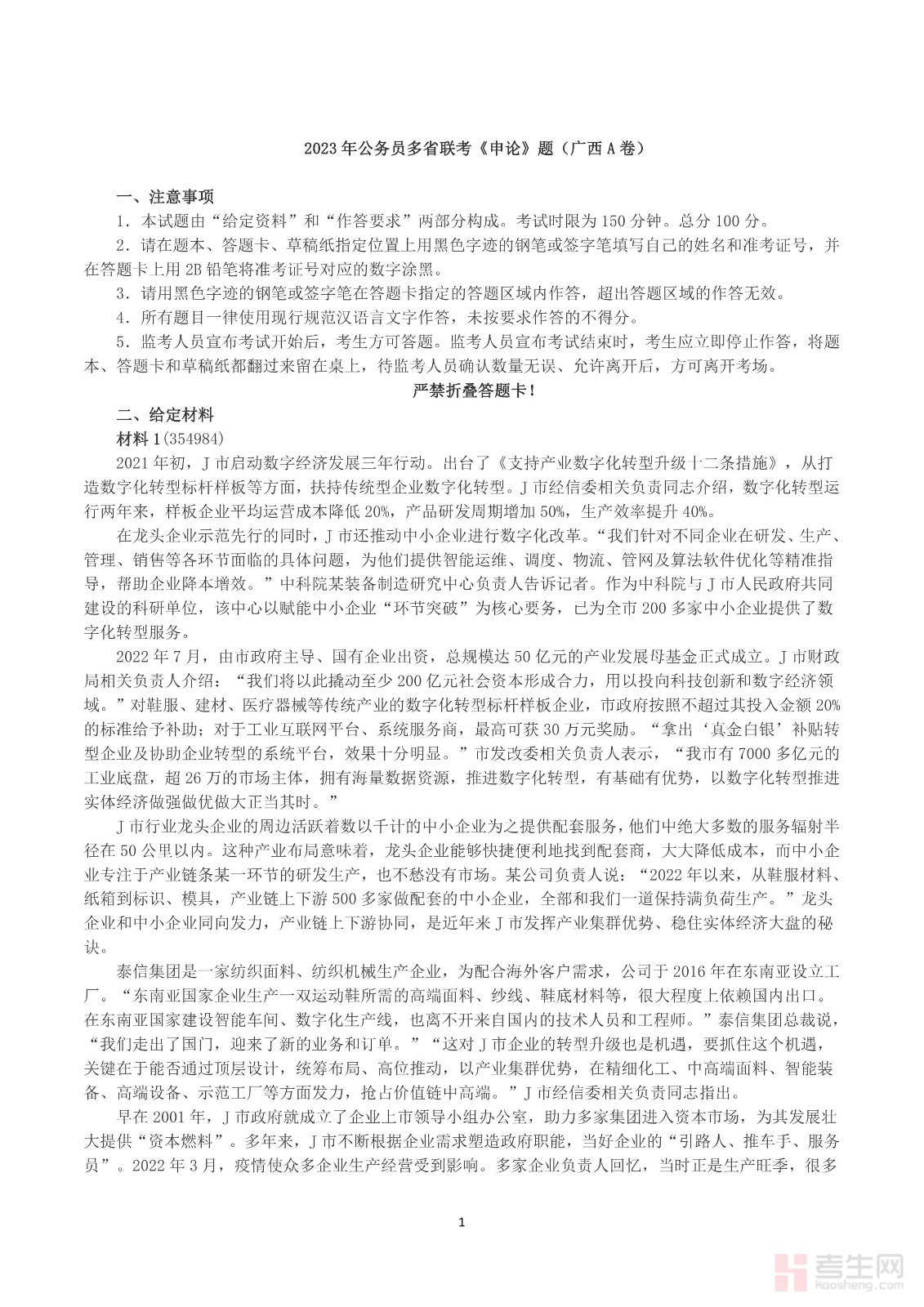 2023年公务员多省联考《申论》(广西A卷)真题及答案