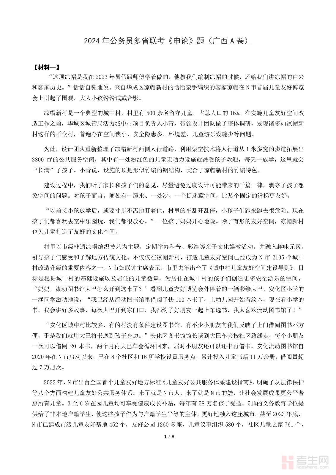 2024年公务员多省联考《申论》题(广西A卷)题及参考答案