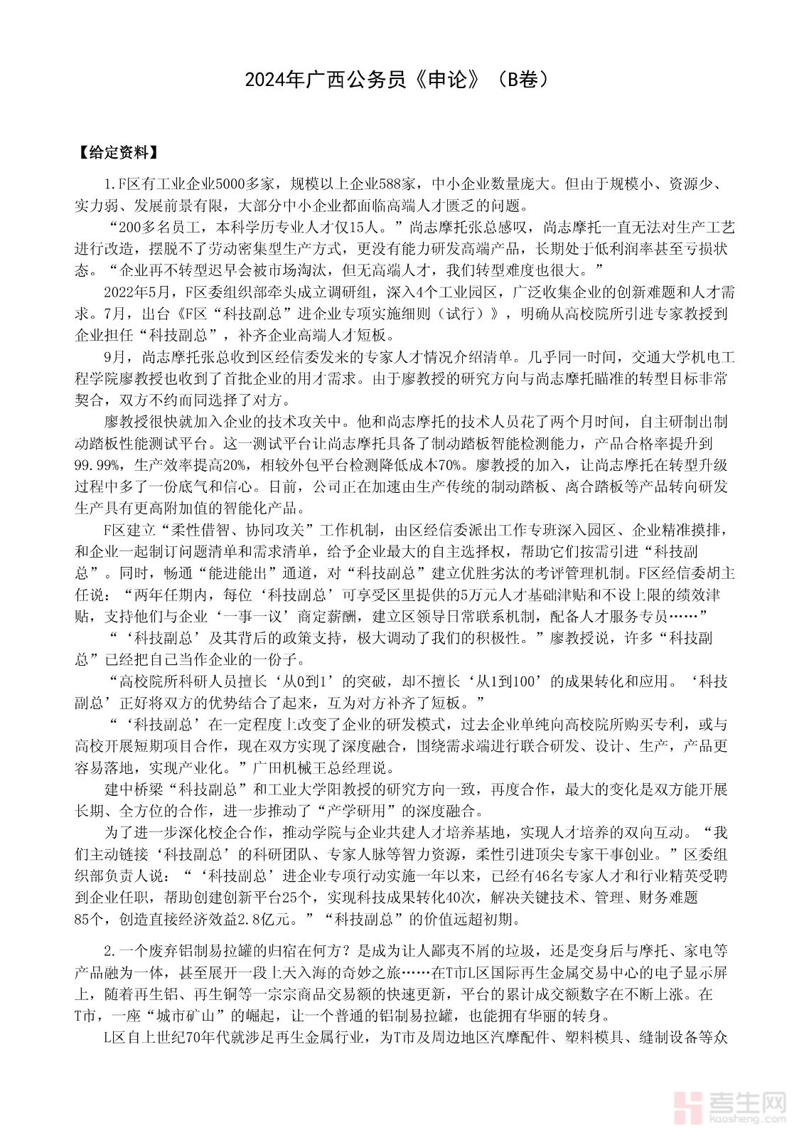 2024年公务员多省联考《申论》题(广西B卷)题及参考答案