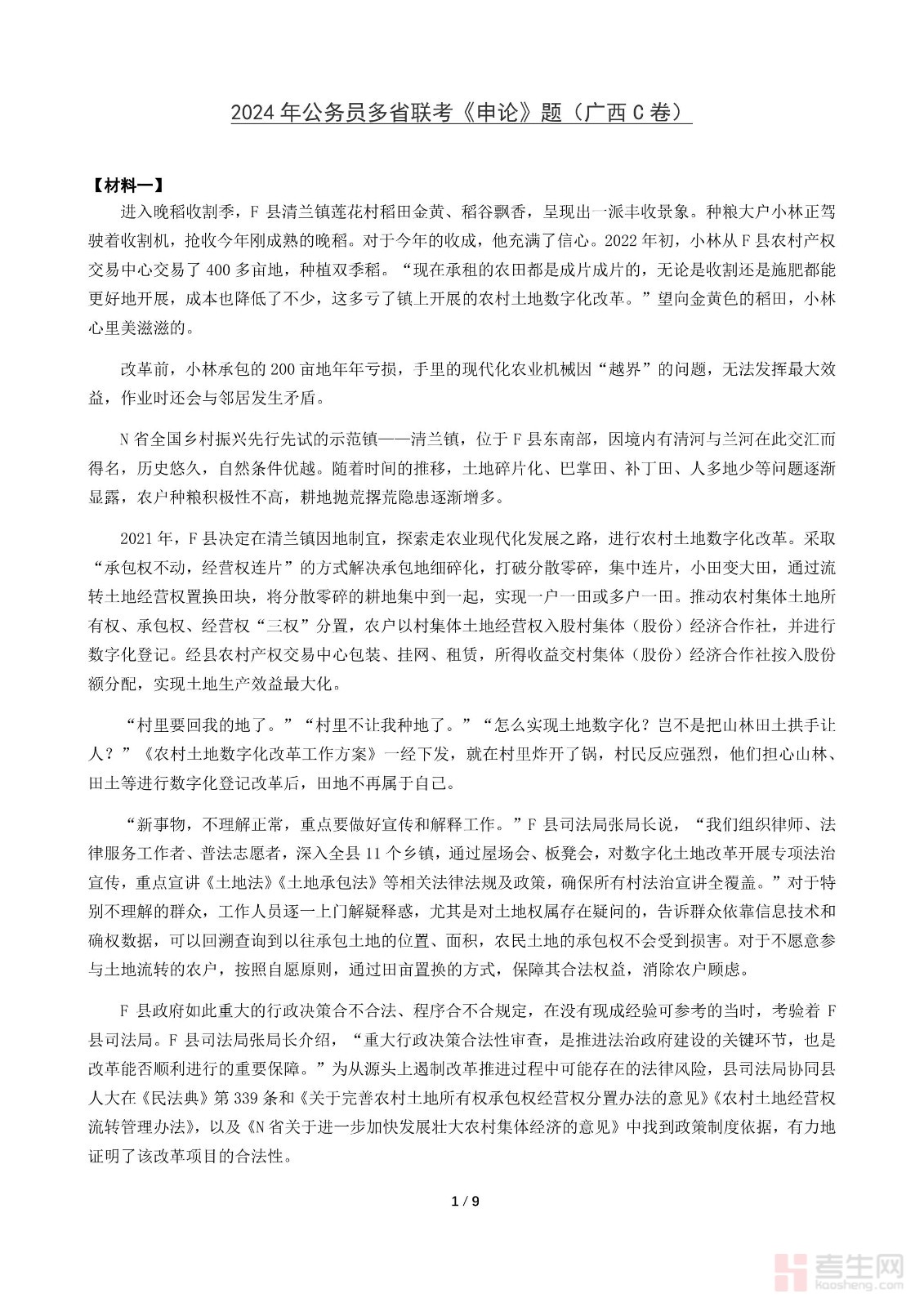 2024年公务员多省联考《申论》题(广西C卷)题及参考答案
