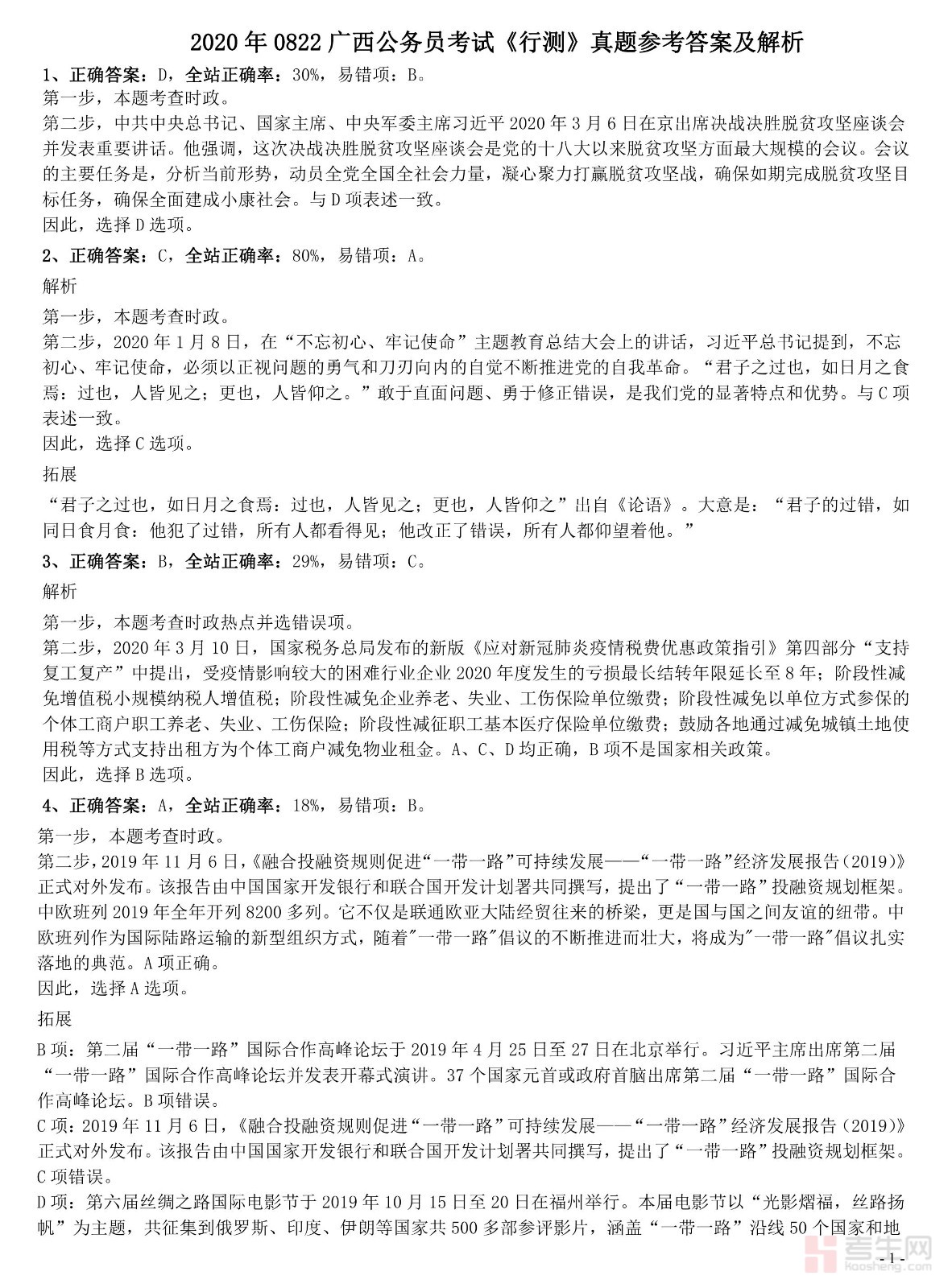 2020年0822广西公务员考试《行测》真题参考答案及解析