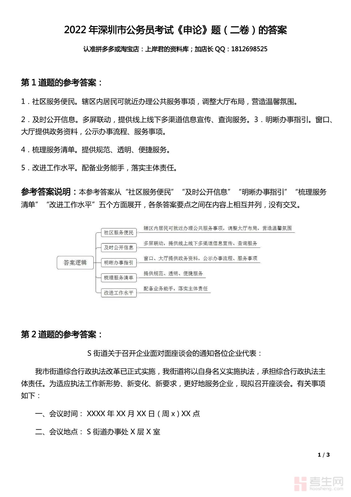 2022年深圳市公务员考试《申论》题(二卷)的答案
