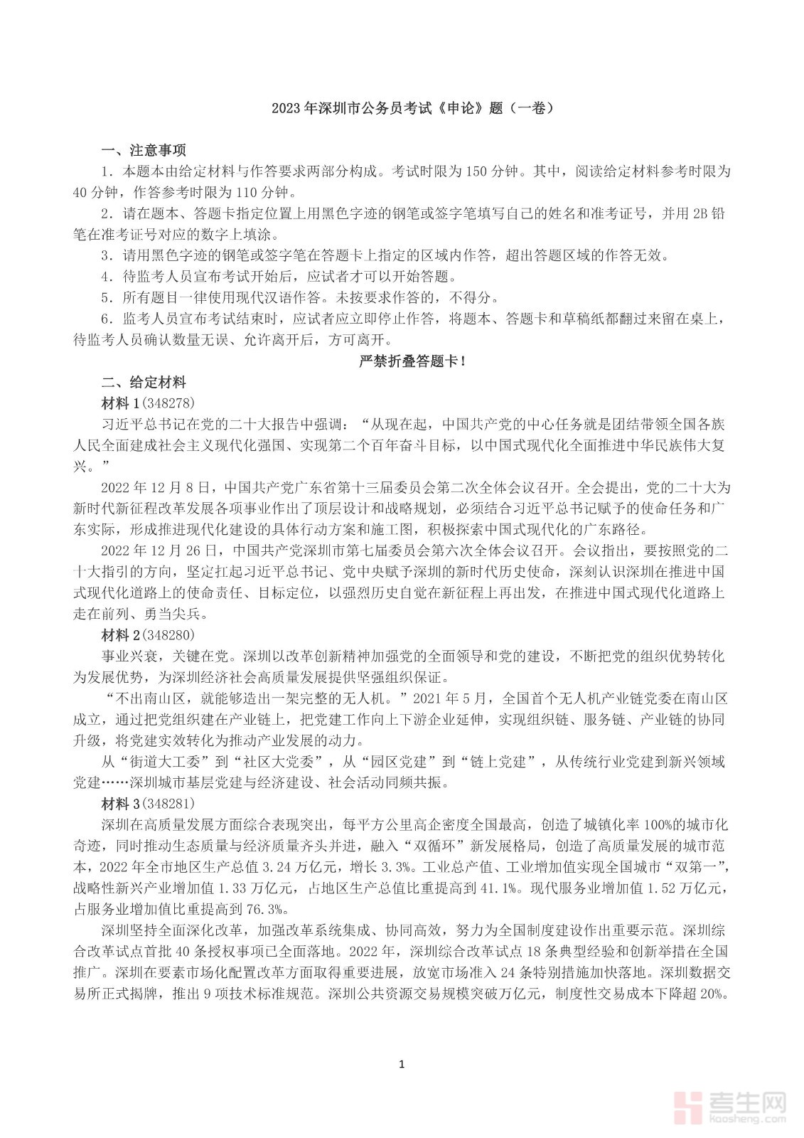 2023年深圳市公务员考试《申论》(一卷)真题及答案