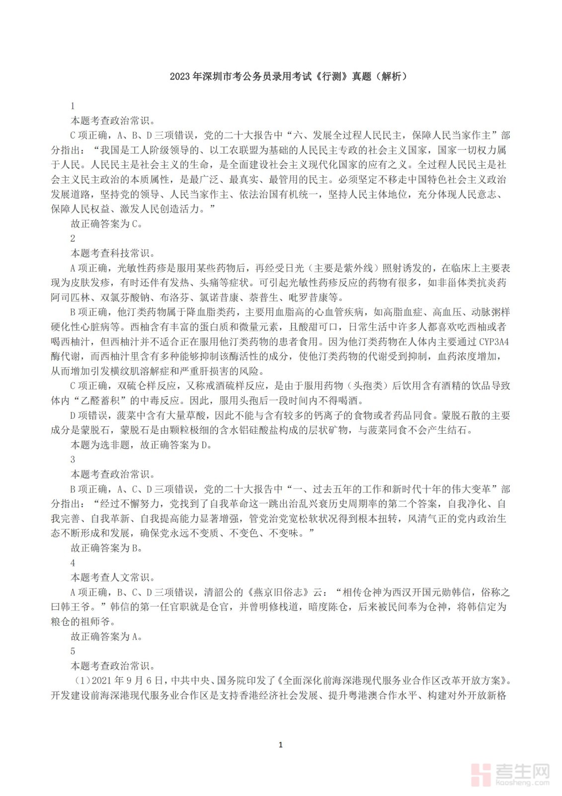 2023年深圳市考公务员录用考试《行测》真题(解析)