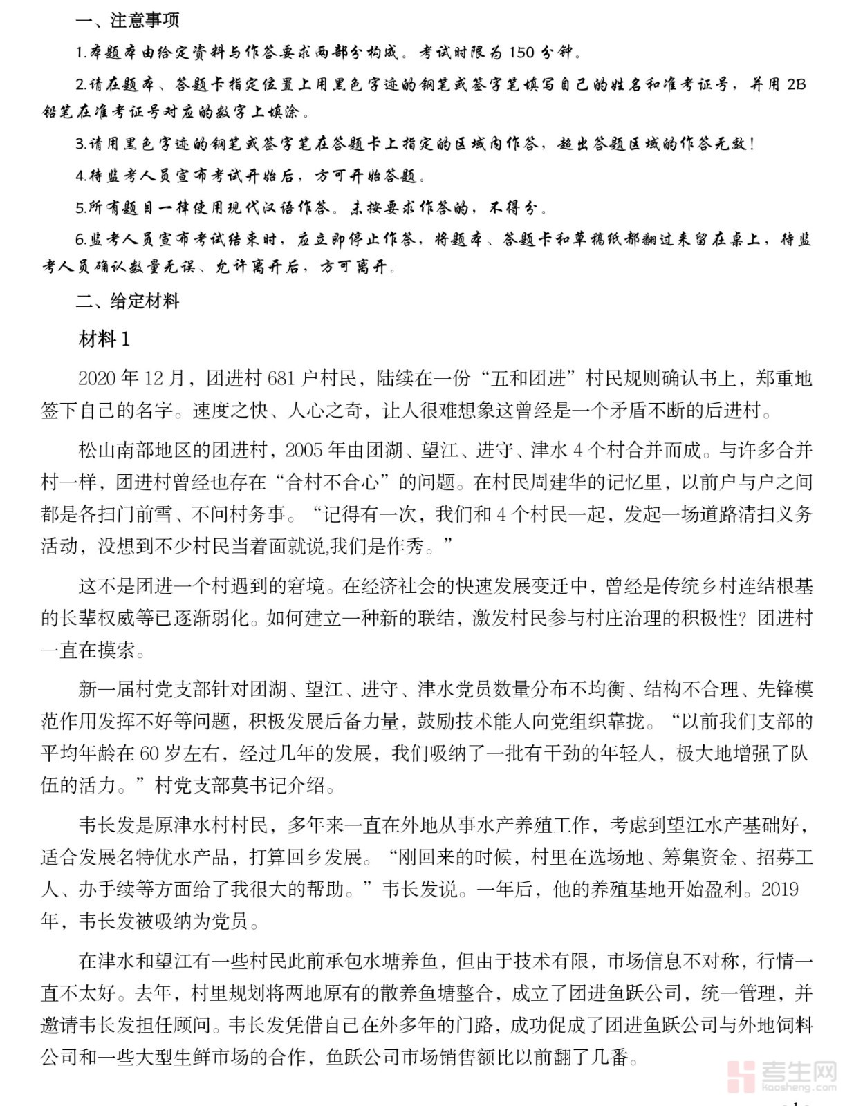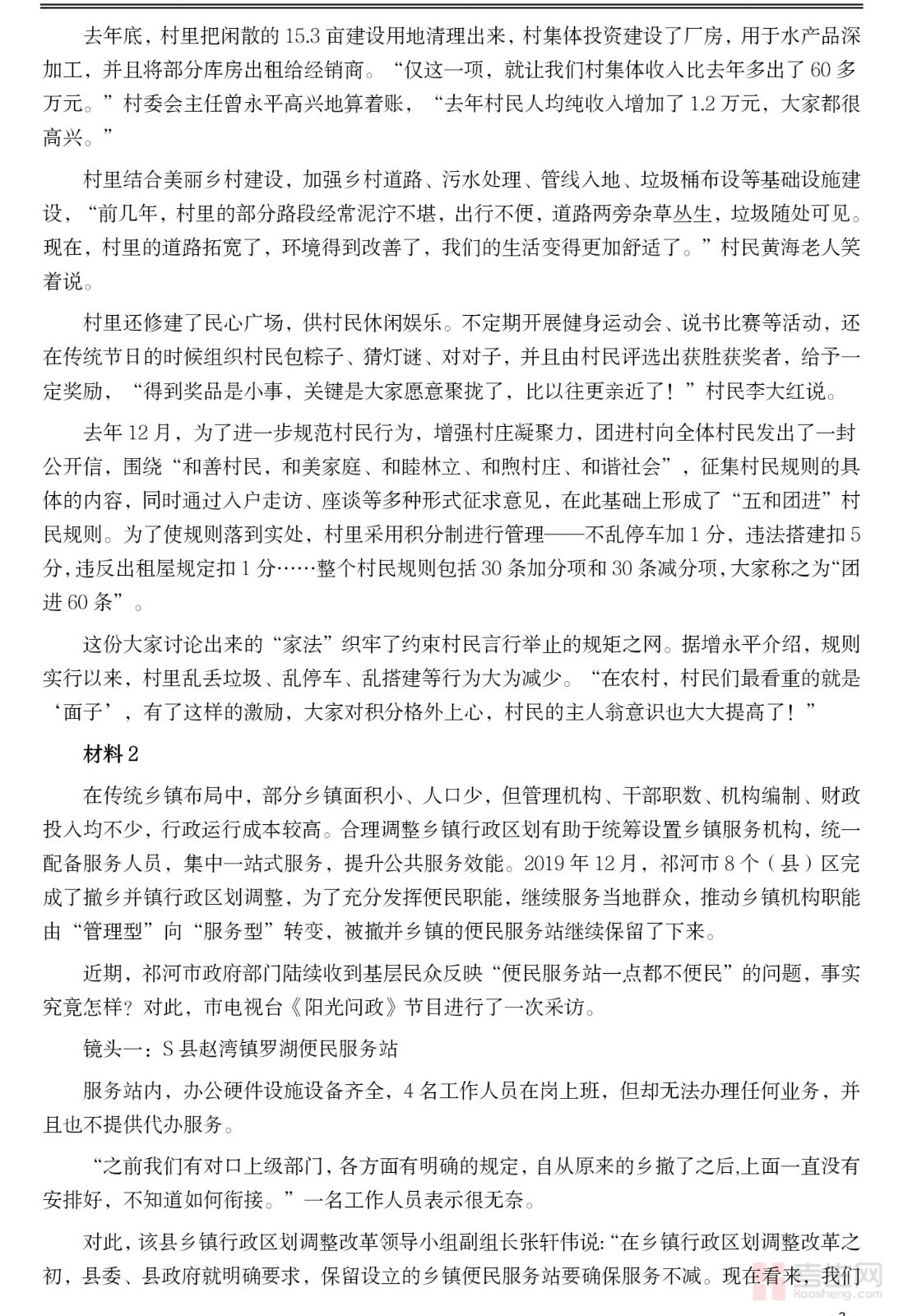 2021年公务员多省联考《申论》题(湖南乡镇卷)及参考答案