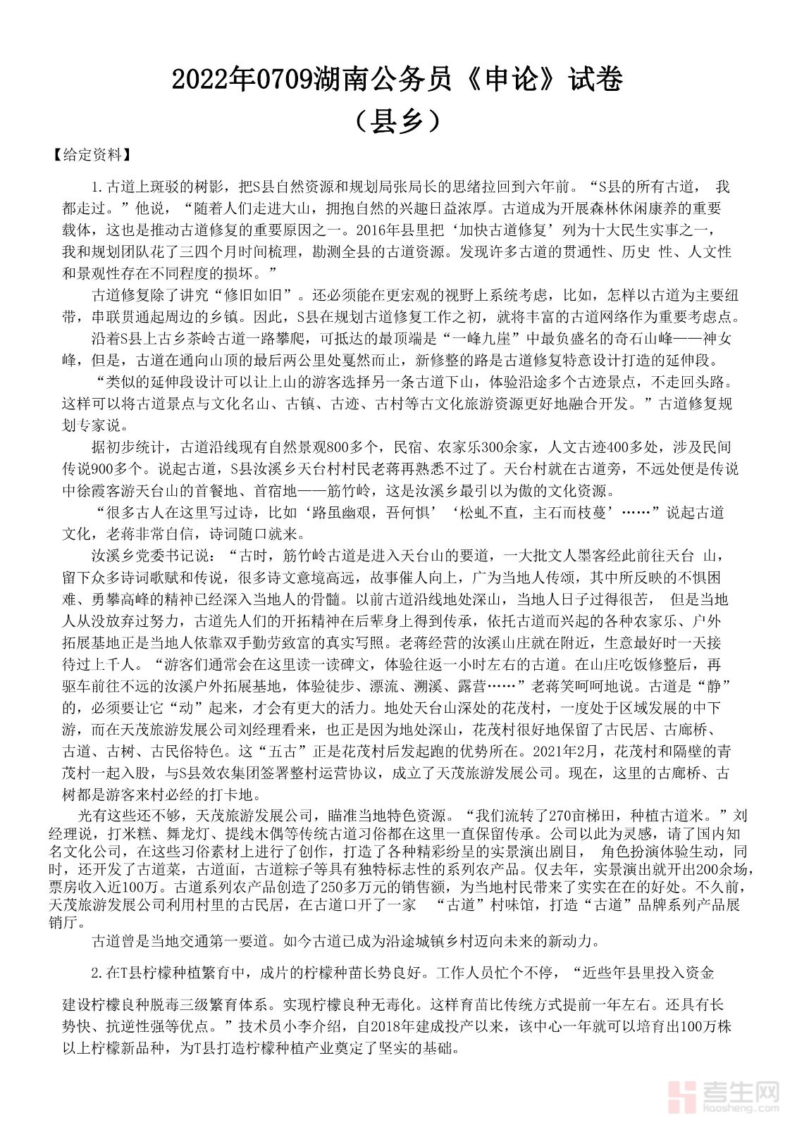 2022年0709湖南公务员考试申论真题及答案(县乡卷)