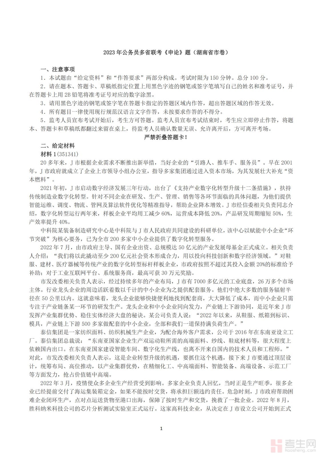 2023年公务员多省联考《申论》(湖南省市卷)真题及答案