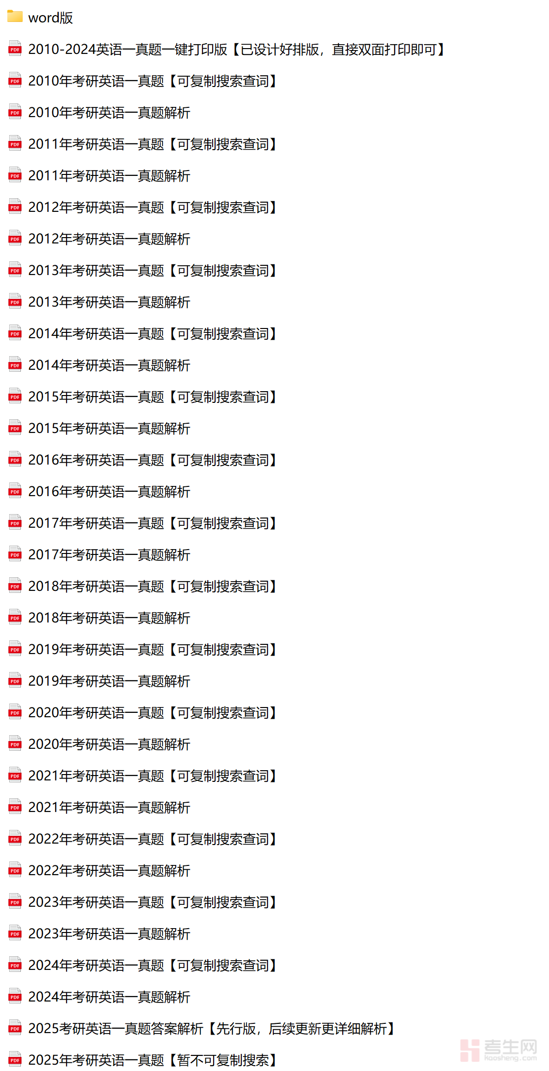 “2010-2025 年考研英语一真题及解析” 这份资料的说明: