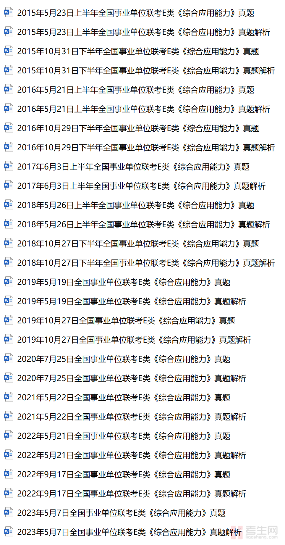 2015年-2023年全国事业单位联考E类《综合应用能力》真题+答案+解析