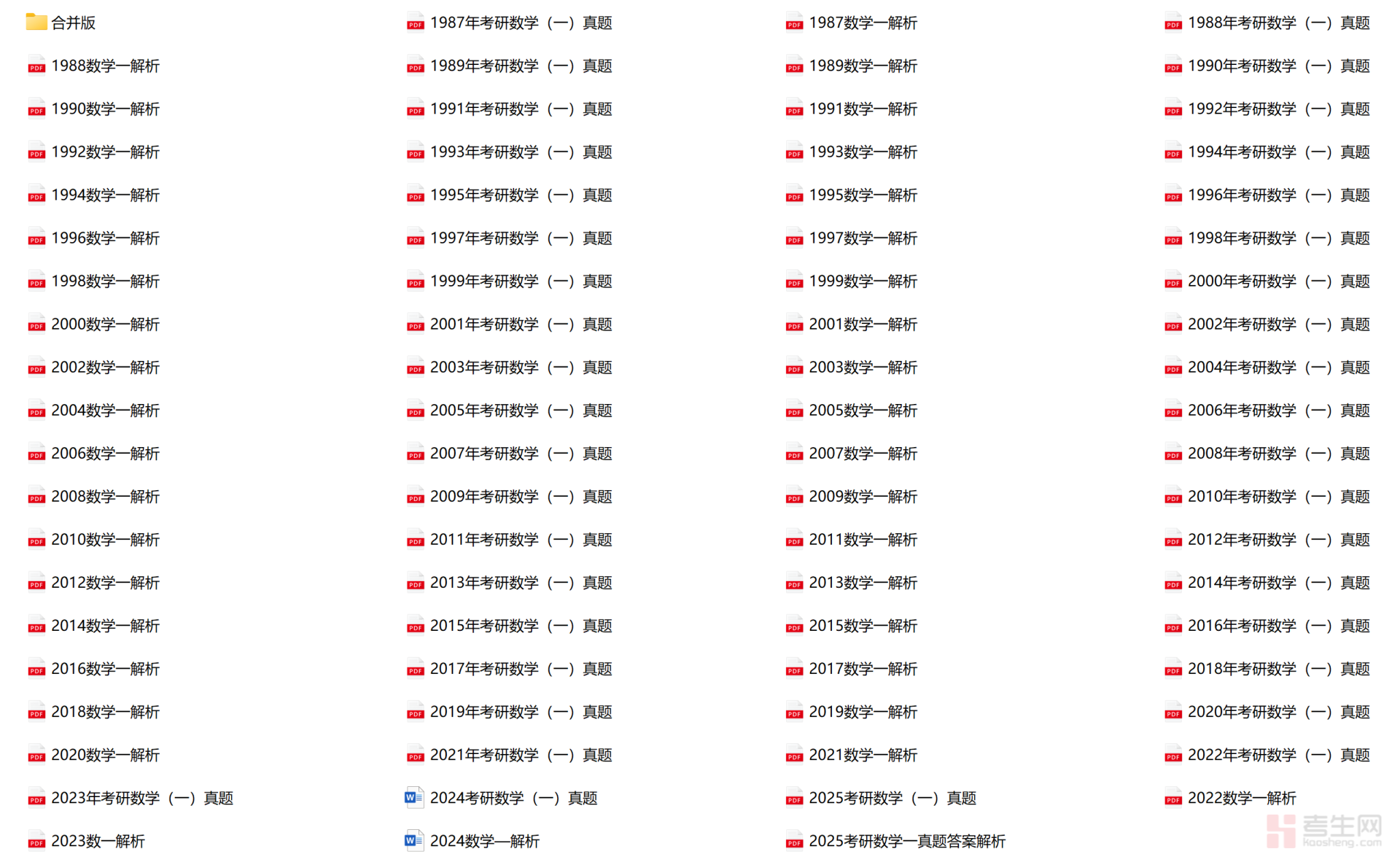 1987-2025年考研数学一答案真题+答案及解析