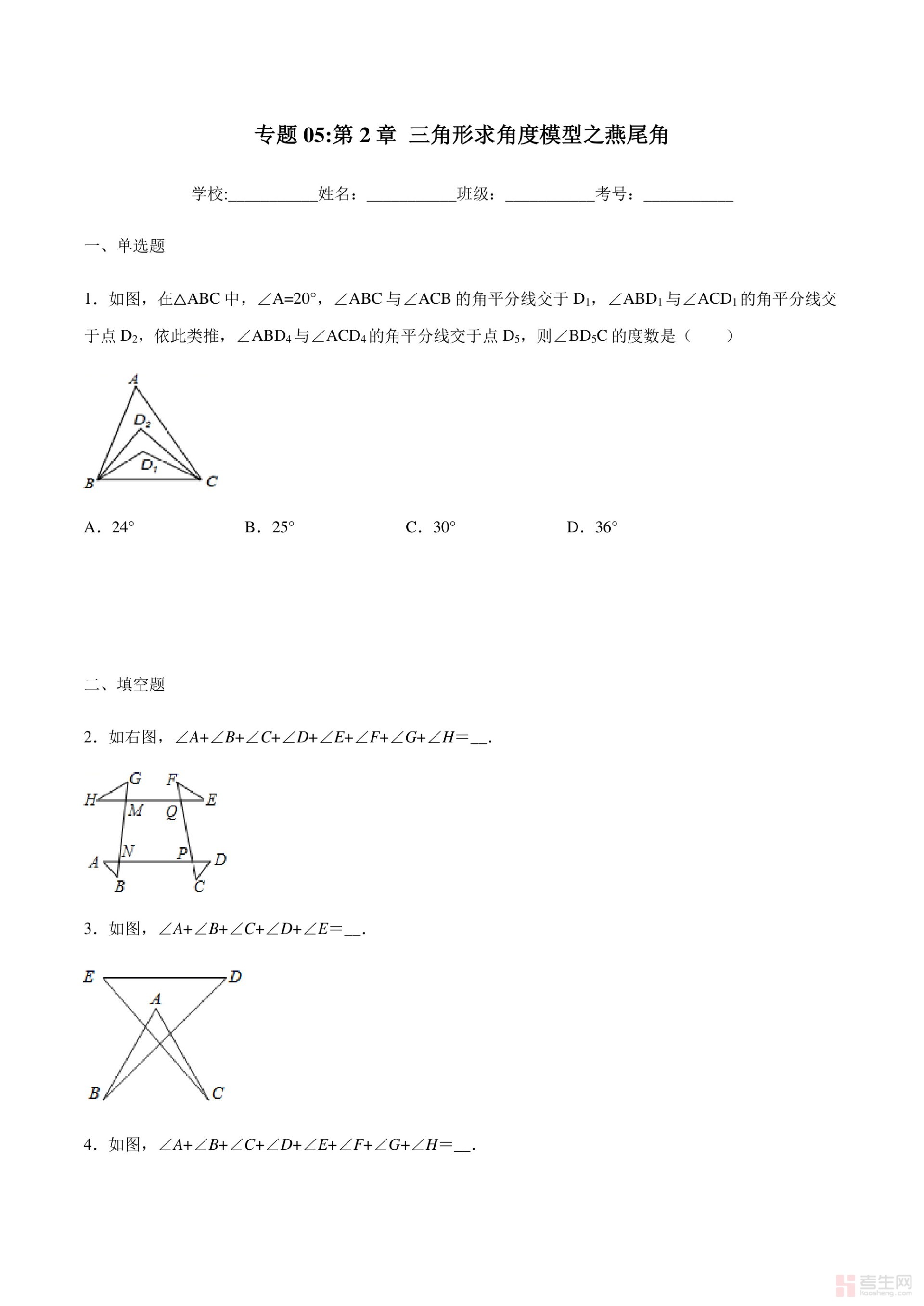 三角形求角度模型之燕尾角- 中考数学解题方法系统训练(全国通用)