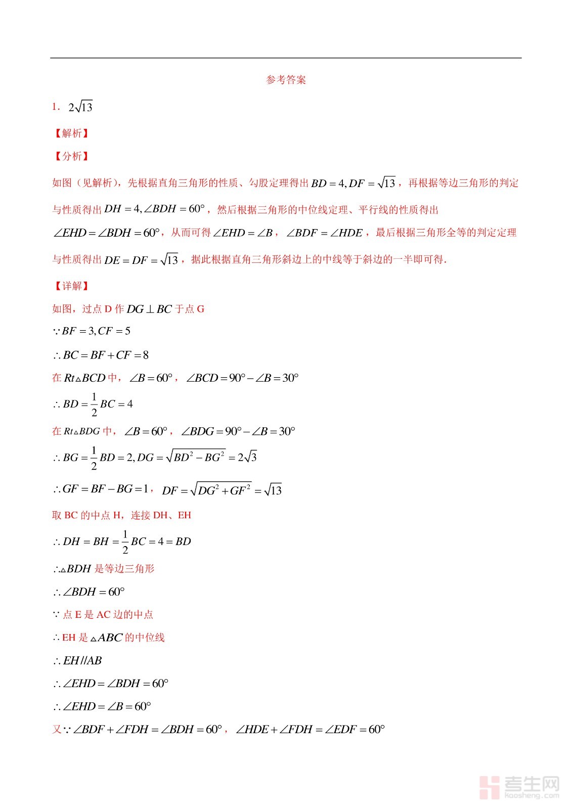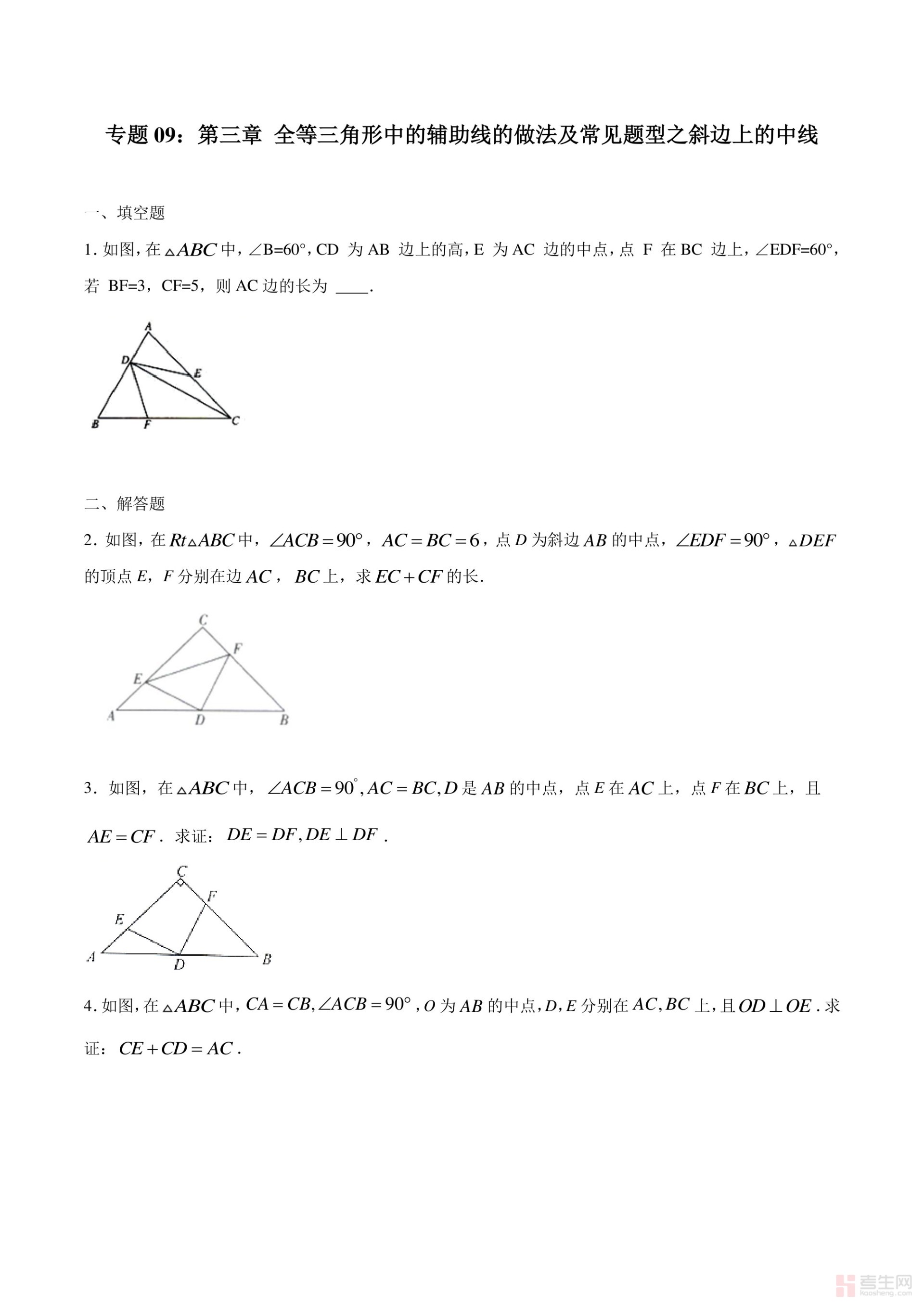 《全等三角形中的辅助线做法及常见题型之斜边上的中线》系统训练资料,让你轻松应对相关题型,提升解题能力,确保在中考中脱颖而出!
