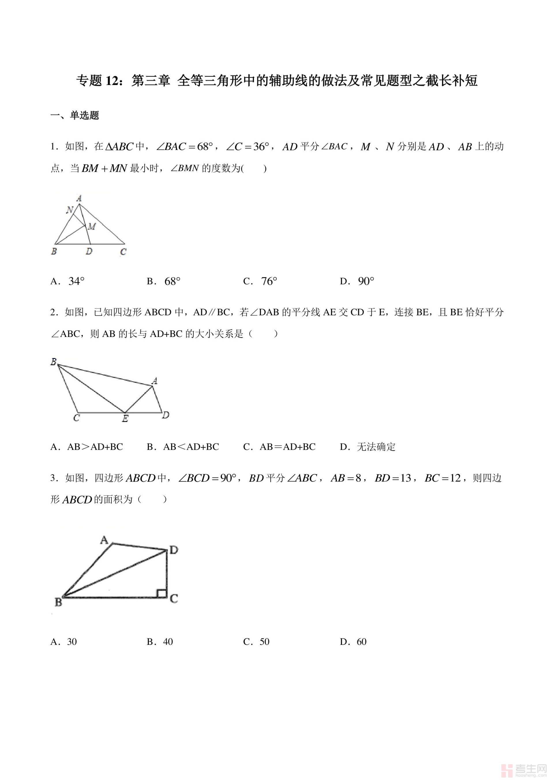 全等三角线中的辅助线做法及常见题型之截长补短- 中考数学解题方法系统训练(全国通用)
