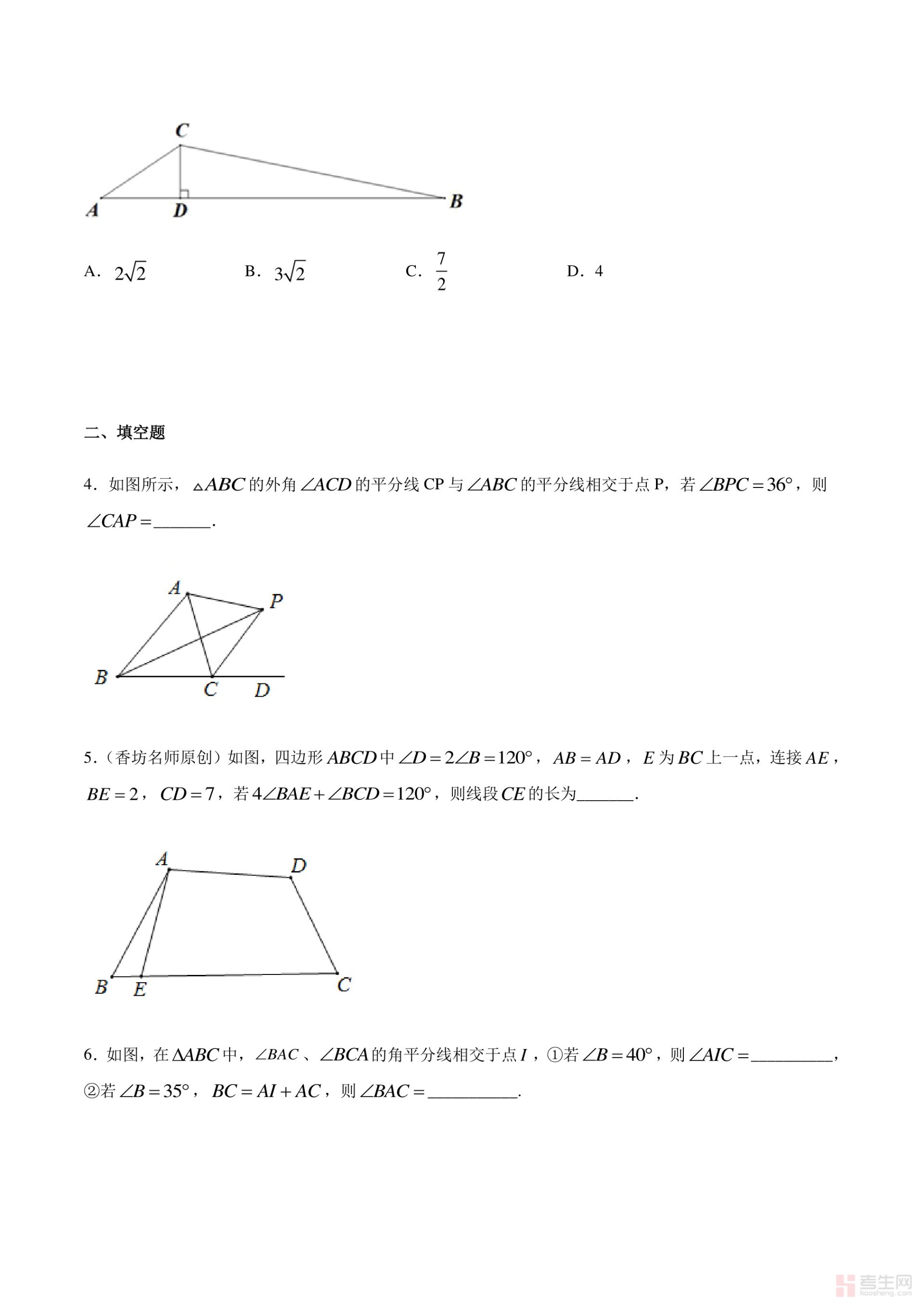 全等三角线中的辅助线做法及常见题型之和角平分线有关的辅助线- 中考数学解题方法系统训练(全国通用)