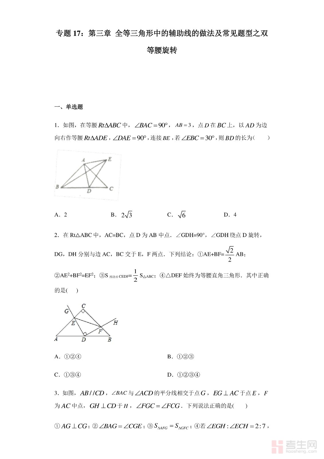 在学习全等三角形的过程中,你是否对“双等腰旋转”这一解题技巧感到困惑?想要轻松掌握这个重要知识点,提升自己的解题能力吗?我们为你准备了一份系统化的训练资料,帮助你顺利突破!