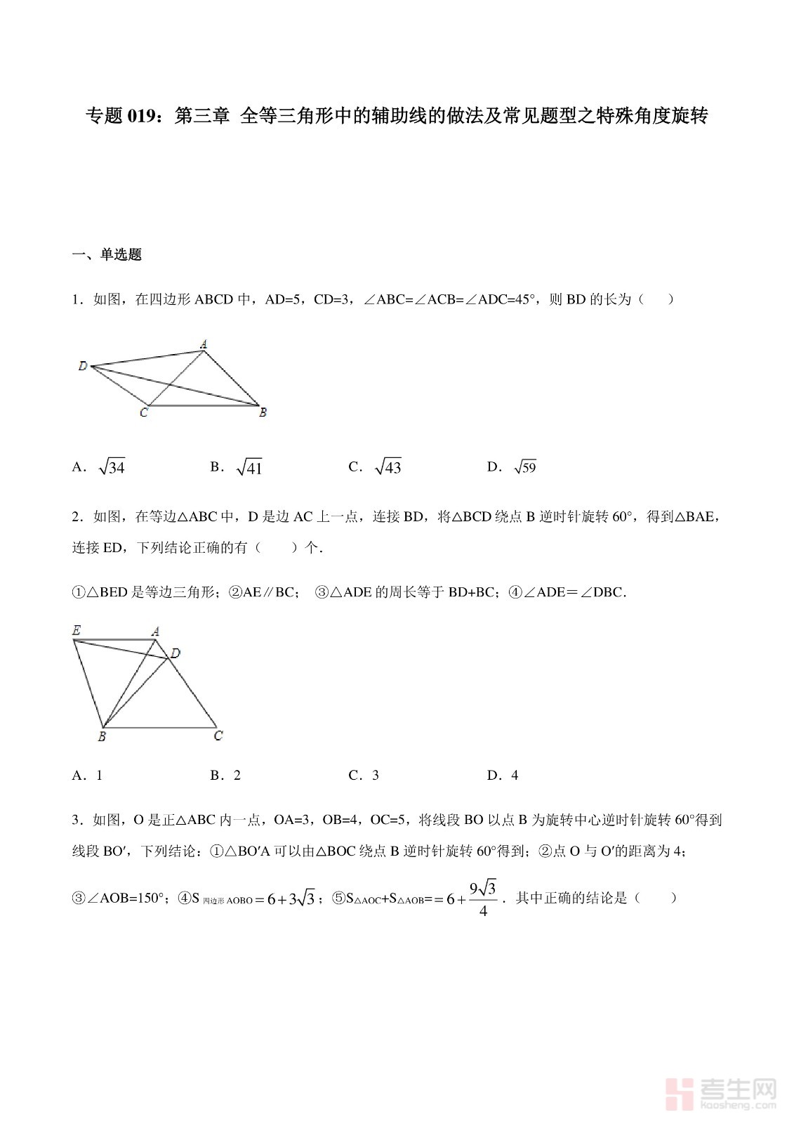 《全等三角形中的辅助线做法及常见题型之60度90度旋转》资料,详细讲解如何运用旋转技巧解决中考中的各类题目,帮你打牢基础,提升解题速度!